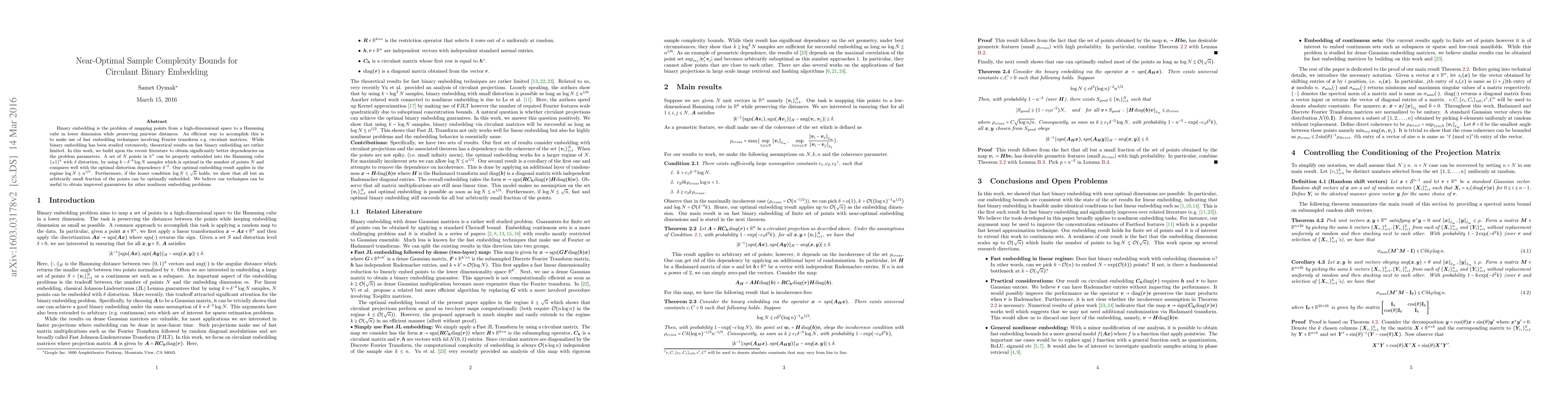 Binary embedding is the problem of mapping points from a high-dimensional space to a Hamming cube in lower dimension while preserving pairwise distances. An efficient way to accomplish this is to make use of fast embedding techniques involving Fourier transform e.g.~circulant matrices. While binary embedding has been studied extensively, theoretical results on fast binary embedding are rather limited. In this work, we build upon the recent literature to obtain significantly better dependencies on the problem parameters. A set of $N$ points in $\mathbb{R}^n$ can be properly embedded into the Hamming cube $\{\pm 1\}^k$ with $\delta$ distortion, by using $k\sim\delta^{-3}\log N$ samples which is optimal in the number of points $N$ and compares well with the optimal distortion dependency $\delta^{-2}$. Our optimal embedding result applies in the regime $\log N\lesssim n^{1/3}$. Furthermore, if the looser condition $\log N\lesssim \sqrt{n}$ holds, we show that all but an arbitrarily small fraction of the points can be optimally embedded. We believe our techniques can be useful to obtain improved guarantees for other nonlinear embedding problems.