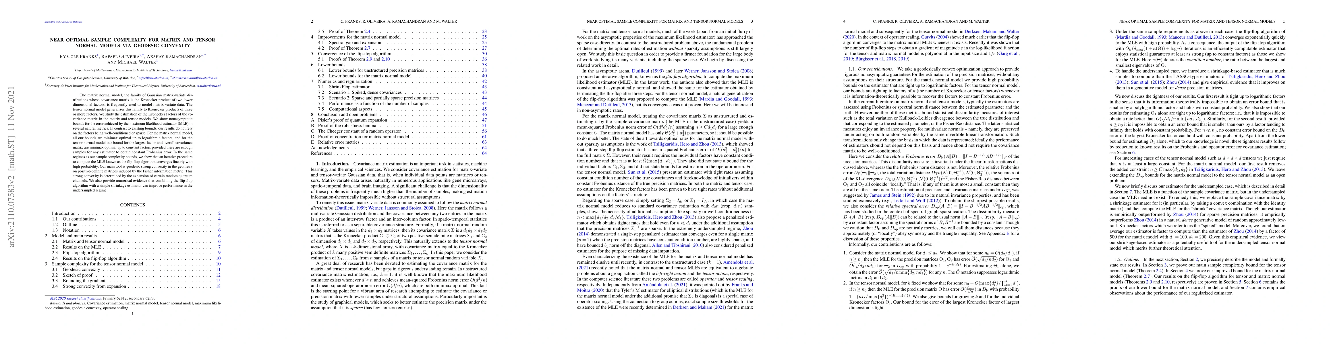 Researchers found that the matrix and tensor normal models can achieve near-optimal performance with just a few samples, thanks to a new method that leverages geodesic convexity. This breakthrough could lead to more efficient and accurate analysis of complex data sets.