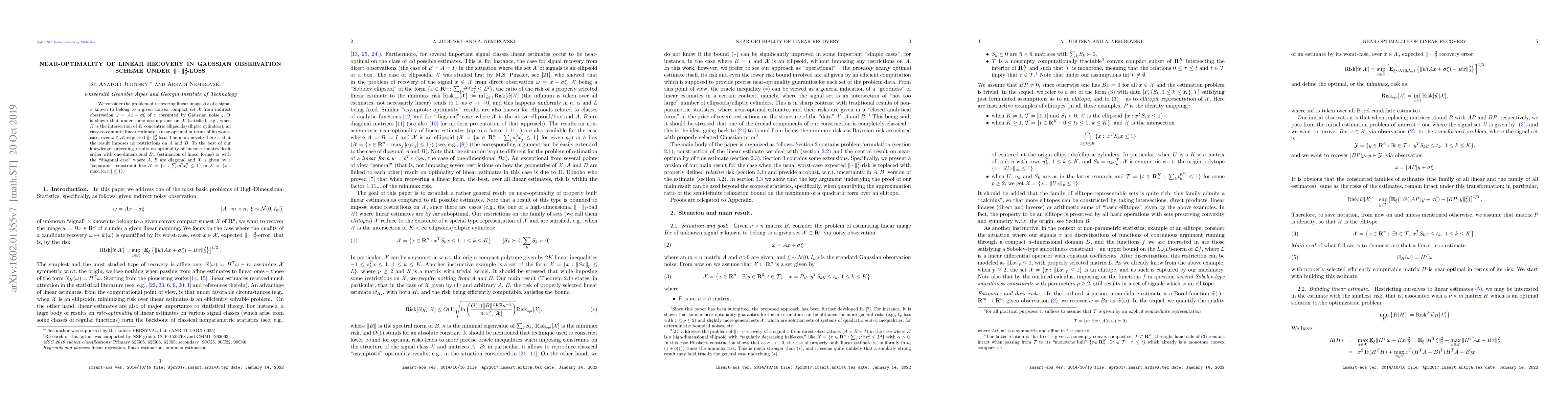 This paper demonstrates that a simple linear estimate is near-optimal for recovering linear images of signals under Gaussian noise, without imposing restrictions on the observation matrices $A$ and $B$. The results apply to signals constrained within a convex set, notably when the set is an intersection of ellipsoids.