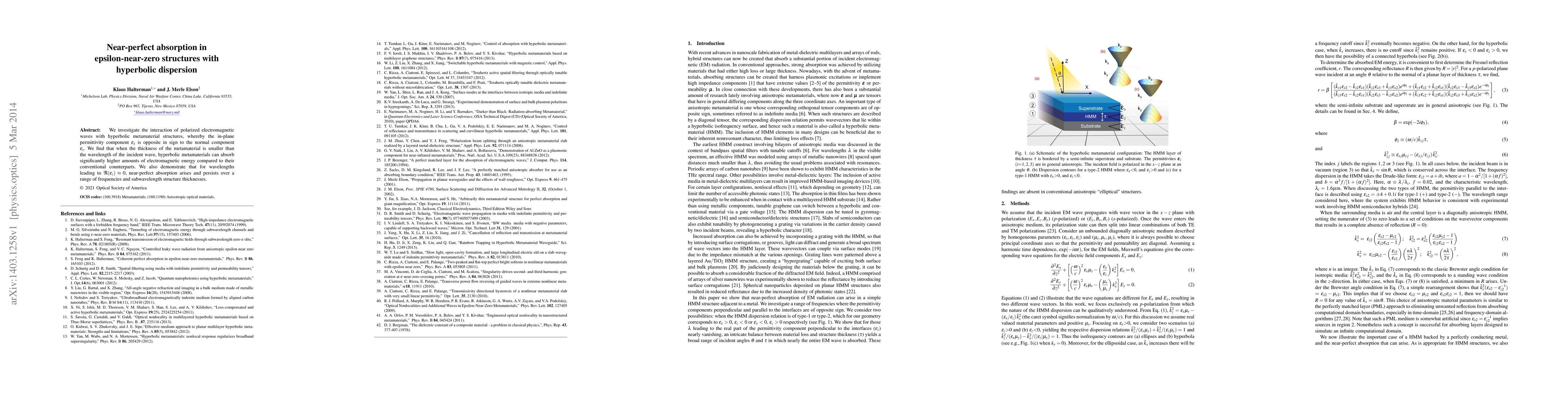 This paper explores how hyperbolic metamaterials with opposite-sign permittivity components can achieve near-perfect absorption of electromagnetic waves when the metamaterial thickness is subwavelength. It demonstrates that such structures can absorb significantly more energy than conventional materials, especially when the normal permittivity component approaches zero.