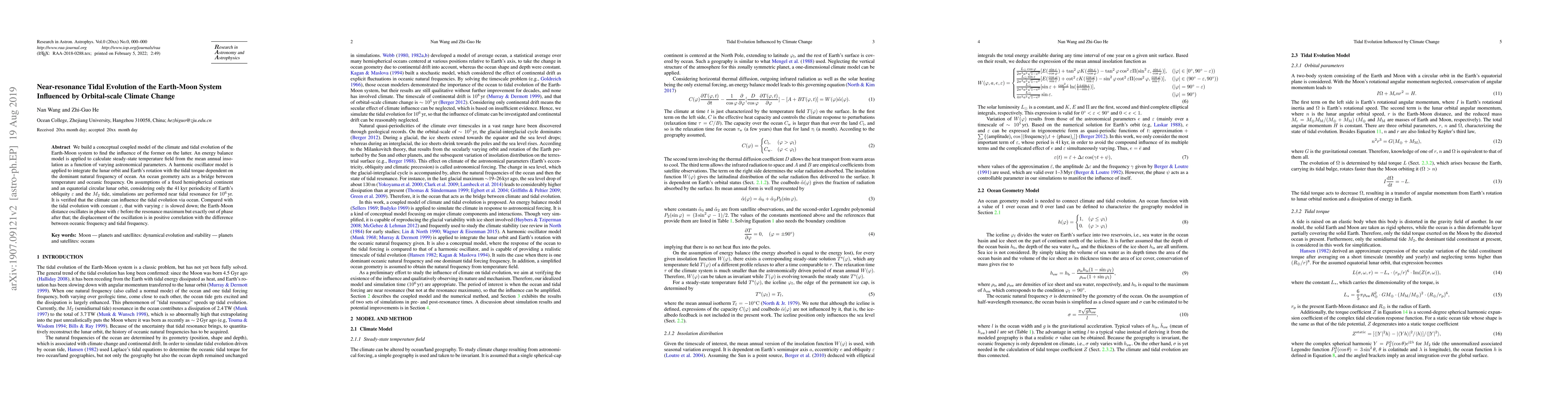 This research develops a coupled model to explore the influence of orbital-scale climate change on the tidal evolution of the Earth-Moon system, finding that climate variations can slow down tidal evolution and affect the Earth-Moon distance oscillation. The study highlights the role of ocean geometry in mediating these interactions.