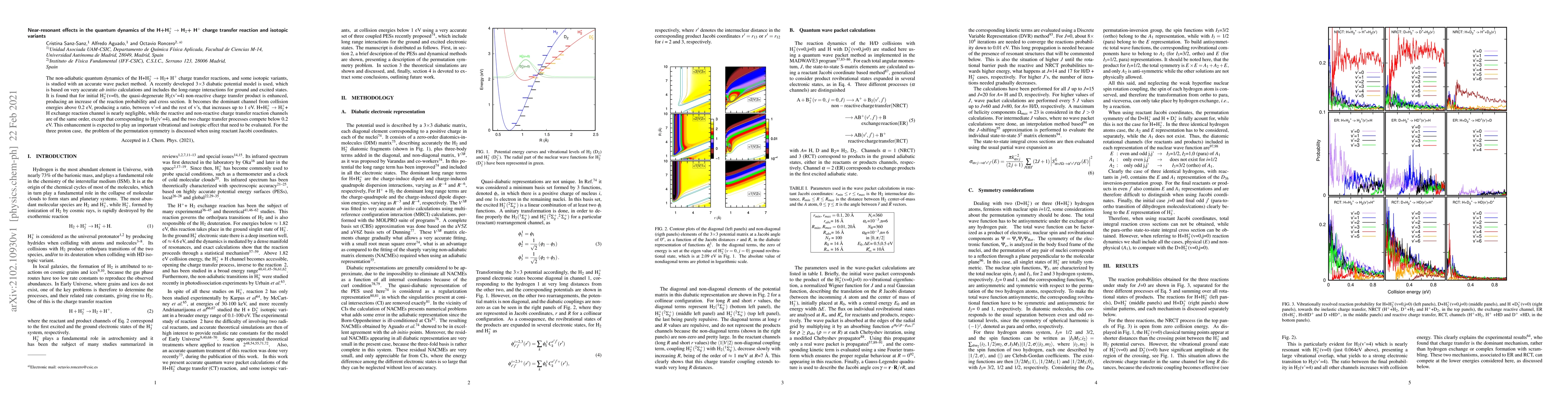 The non-adiabatic quantum dynamics of the H+H$_2^+$ $\rightarrow$ H$_2$+ H$^+$ charge transfer reactions, and some isotopic variants, is studied with an accurate wave packet method. A recently developed $3\times$3 diabatic potential model is used, which is based on very accurate {\it ab initio} calculations and includes the long-range interactions for ground and excited states. It is found that for initial H$_2^+$(v=0), the quasi-degenerate H$_2$(v'=4) non-reactive charge transfer product is enhanced, producing an increase of the reaction probability and cross section. It becomes the dominant channel from collision energies above 0.2 eV, producing a ratio, between v'=4 and the rest of v's, that increases up to 1 eV. H+H$_2^+$ $\rightarrow$ H$_2^+$+ H exchange reaction channel is nearly negligible, while the reactive and non-reactive charge transfer reaction channels are of the same order, except that corresponding to H$_2$(v'=4), and the two charge transfer processes compete below 0.2 eV. This enhancement is expected to play an important vibrational and isotopic effect that need to be evaluated. For the three proton case, the problem of the permutation symmetry is discussed when using reactant Jacobi coordinates.