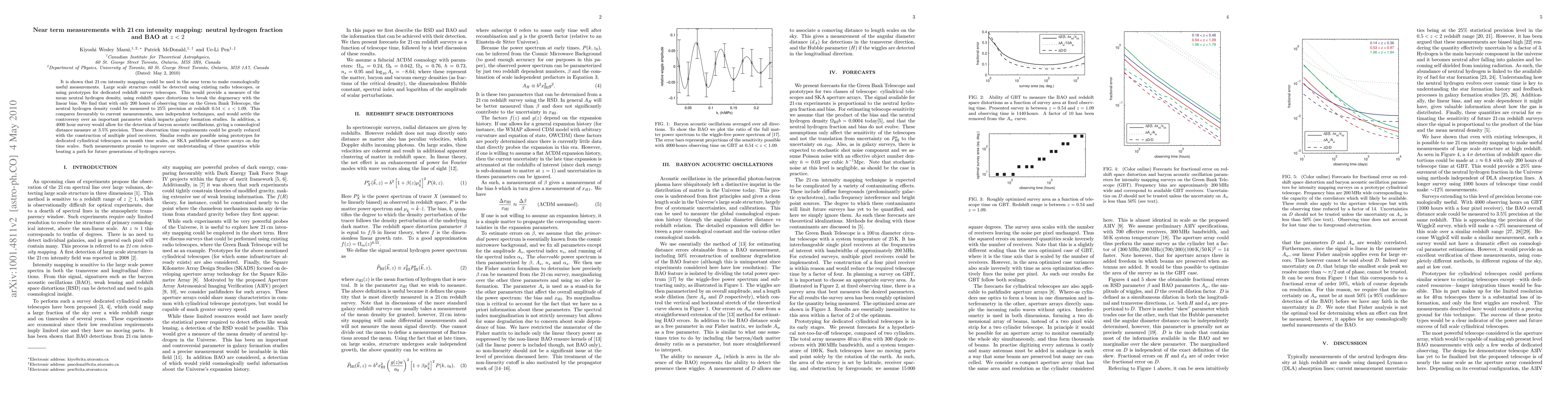 It is shown that 21 cm intensity mapping could be used in the near term to