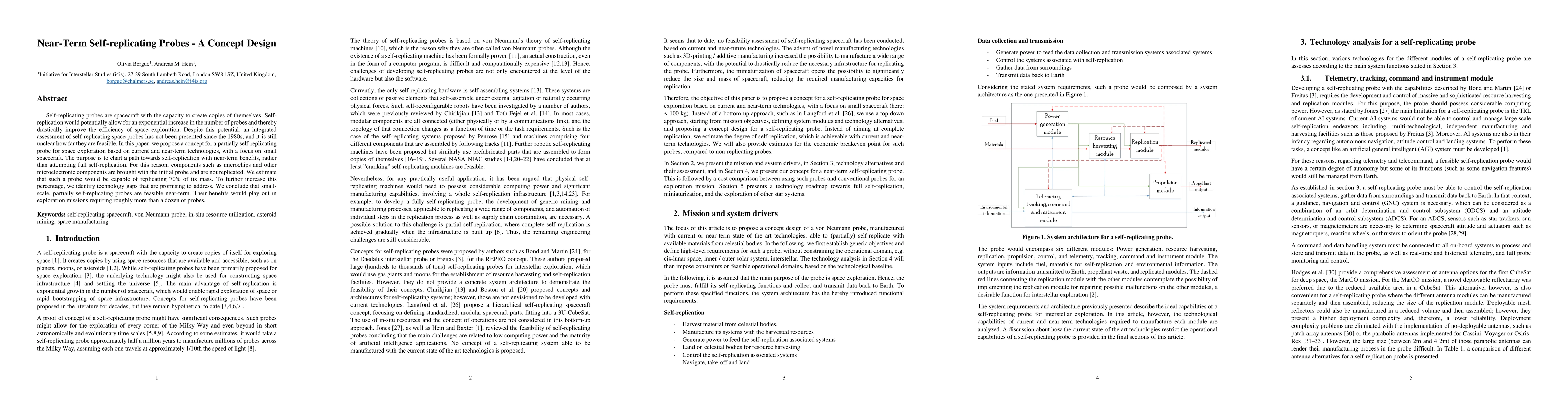 This paper proposes a concept for a near-term partially self-replicating probe capable of replicating 70% of its mass, using current technologies, with the aim of improving space exploration efficiency through incremental self-replication. Identified technology gaps suggest potential for further enhancements.
