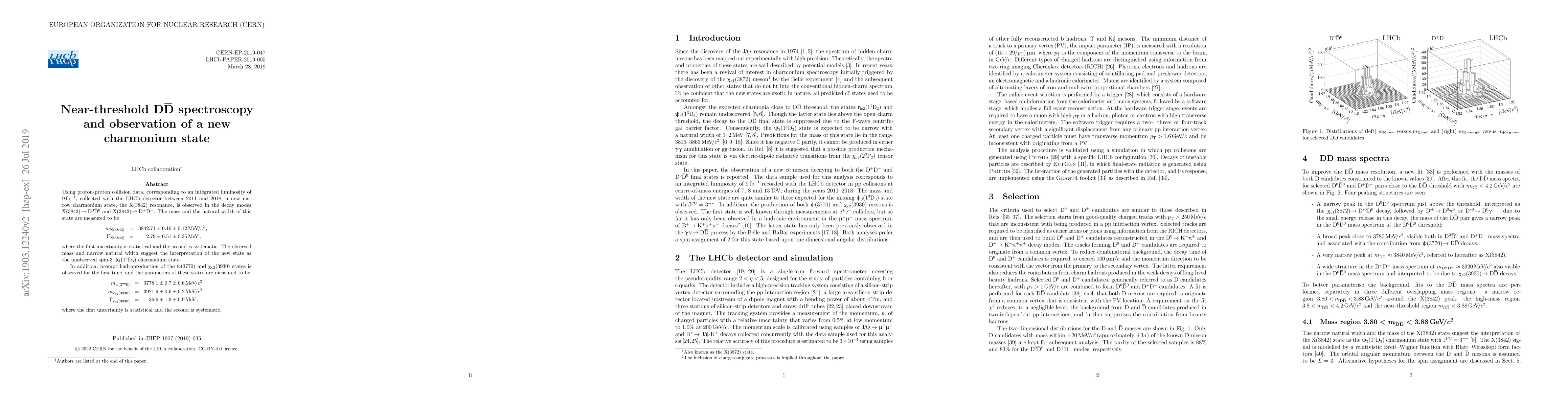 Using proton-proton collision data, corresponding to an integrated luminosity of 9$fb^{-1}$, collected with the~LHCb detector between 2011 and 2018, a new narrow charmonium state, the $X(3842)$ resonance, is observed in the decay modes $X(3842)\rightarrow D^0\bar{D}^0$ and $X(3842)\rightarrow D^+D^-$. The mass and the natural width of this state are measured to be \begin{eqnarray*} m_{X(3842)} & = & 3842.71 \pm 0.16 \pm 0.12 MeV/c^2\,, \Gamma_{X(3842)} & = & 2.79 \pm 0.51 \pm 0.35 MeV\,, \end{eqnarray*} where the first uncertainty is statistical and the~second is systematic. The observed mass and narrow natural width suggest the~interpretation of the new state as the~unobserved spin\nobreakdash-3 $\psi_3\mathrm{\left(1^3D_3\right)}$ charmonium state. In addition, prompt hadroproduction of the $\psi(3770)$~and $\chi_{c2}(3930)$ states is observed for the first time, and the parameters of these~states are measured to be \begin{eqnarray*} m_{\psi(3770)} & = & 3778.1 \pm 0.7 \pm 0.6 MeV/c^2\,, m_{\chi_{c2}(3930)} & = & 3921.9 \pm 0.6 \pm 0.2 MeV/c^2\,, \Gamma_{\chi_{c2}(3930)} & = &36.6 \pm 1.9 \pm 0.9 MeV\,, \end{eqnarray*} where the first uncertainty is statistical and the~second is systematic.