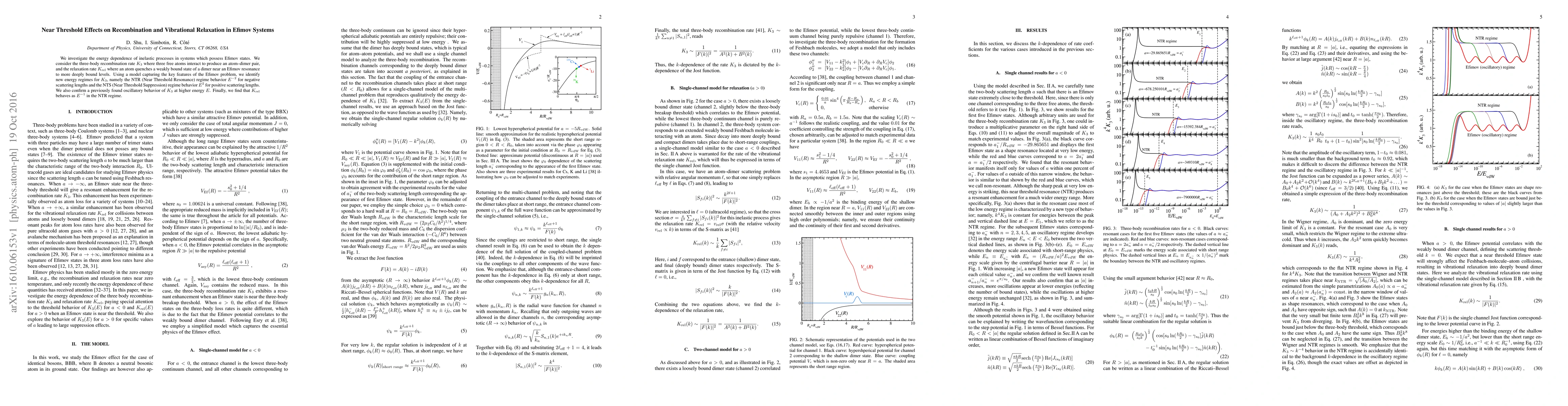 We investigate the energy dependence of inelastic processes in systems which possess Efimov states. We consider the three-body recombination rate $K_3$ where three free atoms interact to produce an atom--dimer pair, and the relaxation rate $K_{\rm rel}$ where an atom quenches a weakly bound state of a dimer near an Efimov resonance to more deeply bound levels. Using a model capturing the key features of the Efimov problem, we identify new energy regimes for $K_3$, namely the NTR (Near Threshold Resonance) regime behavior $E^{-2}$ for negative scattering lengths and the NTS (Near Threshold Suppression) regime behavior $E^2$ for positive scattering lengths. We also confirm a previously found oscillatory behavior of $K_3$ at higher energy $E$. Finally, we find that $K_{\rm rel}$ behaves as $E^{-1}$ in the NTR regime.
