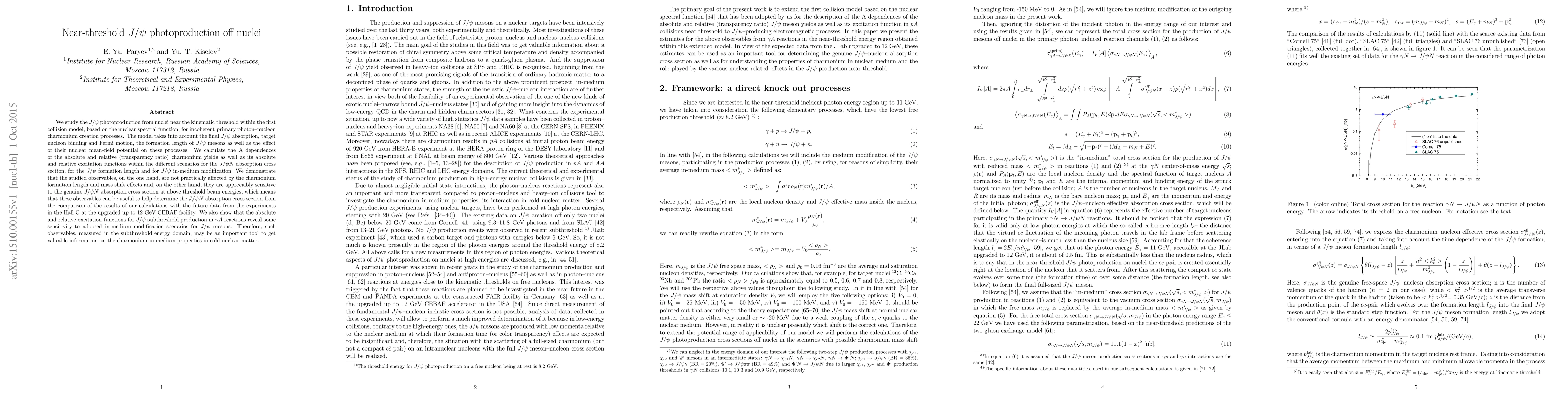We study the $J/\psi$ photoproduction from nuclei near the kinematic threshold within the first collision model, based on the nuclear spectral function, for incoherent primary photon--nucleon charmonium creation processes. The model takes into account the final $J/\psi$ absorption, target nucleon binding and Fermi motion, the formation length of $J/\psi$ mesons as well as the effect of their nuclear mean-field potential on these processes. We calculate the A dependences of the absolute and relative (transparency ratio) charmonium yields as well as its absolute and relative excitation functions within the different scenarios for the $J/\psi N$ absorption cross section, for the $J/\psi$ formation length and for $J/\psi$ in-medium modification. We demonstrate that the studied observables, on the one hand, are not practically affected by the charmonium formation length and mass shift effects and, on the other hand, they are appreciably sensitive to the genuine $J/\psi N$ absorption cross section at above threshold beam energies, which means that these observables can be useful to help determine the $J/\psi N$ absorption cross section from the comparison of the results of our calculations with the future data from the experiments in the Hall C at the upgraded up to 12 GeV CEBAF facility. We also show that the absolute and relative excitation functions for $J/\psi$ subthreshold production in ${\gamma}A$ reactions reveal some sensitivity to adopted in-medium modification scenarios for $J/\psi$ mesons. Therefore, such observables, measured in the subthreshold energy domain, may be an important tool to get valuable information on the charmonium in-medium properties in cold nuclear matter.