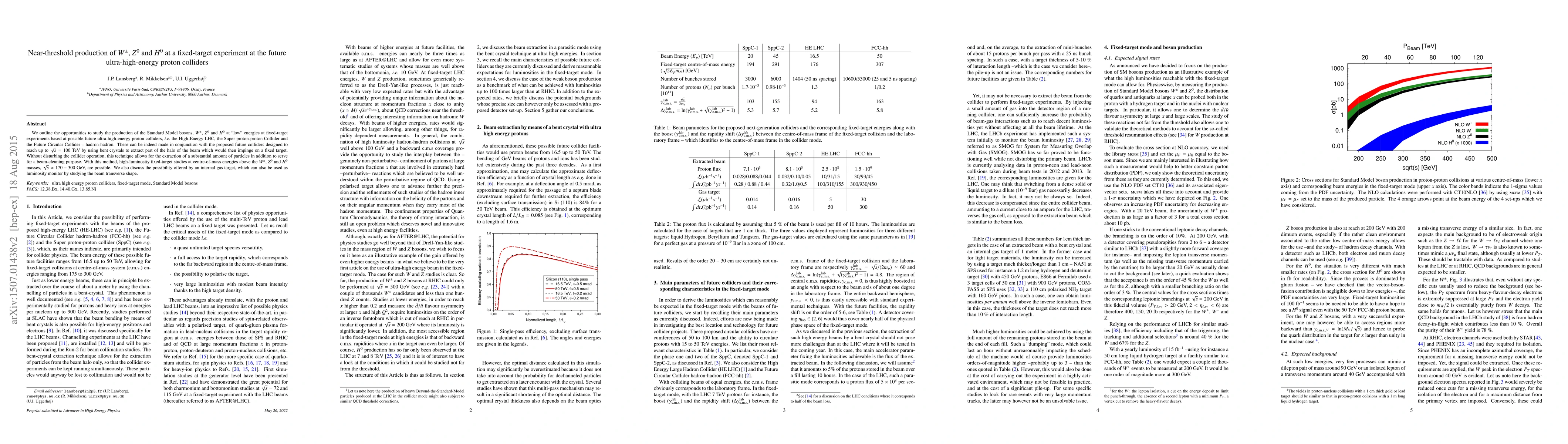 We outline the opportunities to study the production of the Standard Model bosons, $W^\pm$, $Z^0$ and $H^0$ at "low" energies at fixed-target experiments based at possible future ultra-high-energy proton colliders, \ie\ the High-Energy LHC, the Super proton-proton Collider and the Future Circular Collider -- hadron-hadron. These can be indeed made in conjunction with the proposed future colliders designed to reach up to $\sqrt{s}=100$ TeV by using bent crystals to extract part of the halo of the beam which would then impinge on a fixed target. Without disturbing the collider operation, this technique allows for the extraction of a substantial amount of particles in addition to serve for a beam-cleaning purpose. With this method, high-luminosity fixed-target studies at centre-of-mass energies above the $W^\pm$, $Z^0$ and $H^0$ masses, $\sqrt{s} \simeq 170-300$ GeV, are possible. We also discuss the possibility offered by an internal gas target, which can also be used as luminosity monitor by studying the beam transverse shape.