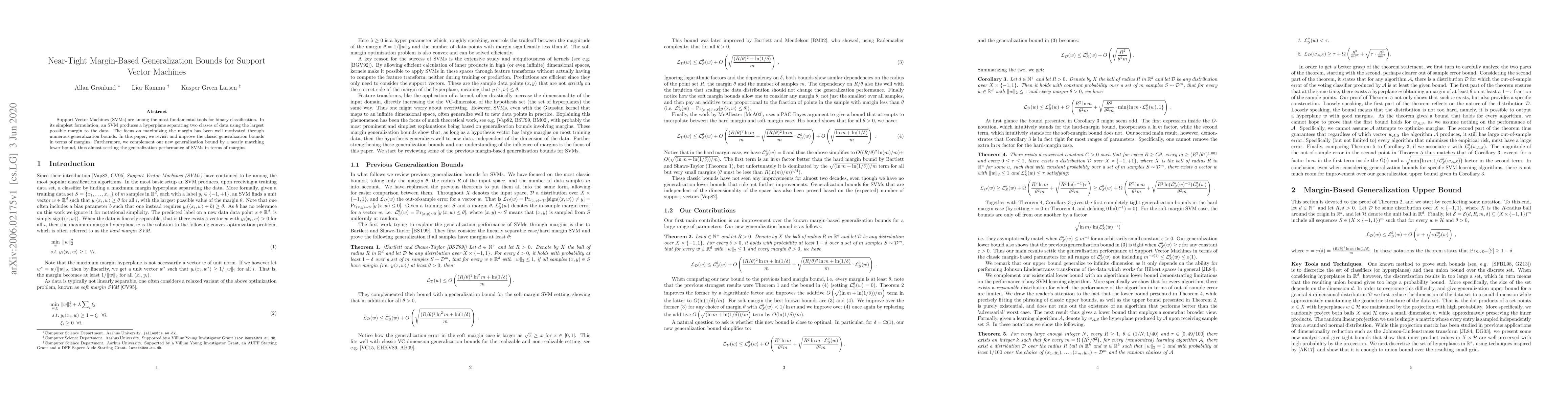 This paper improves classic generalization bounds for Support Vector Machines (SVMs) by focusing on margin-based criteria, and provides a nearly matching lower bound, effectively settling the generalization performance of SVMs in terms of margins.