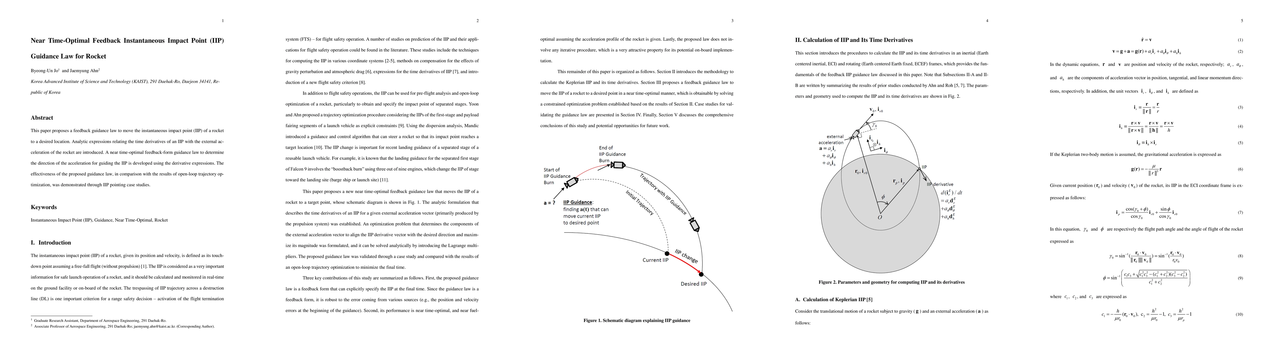 This paper introduces a near time-optimal feedback guidance law to control the instantaneous impact point (IIP) of a rocket by determining the acceleration direction using analytic expressions. The effectiveness of the proposed method is validated through comparative case studies with open-loop trajectory optimization.