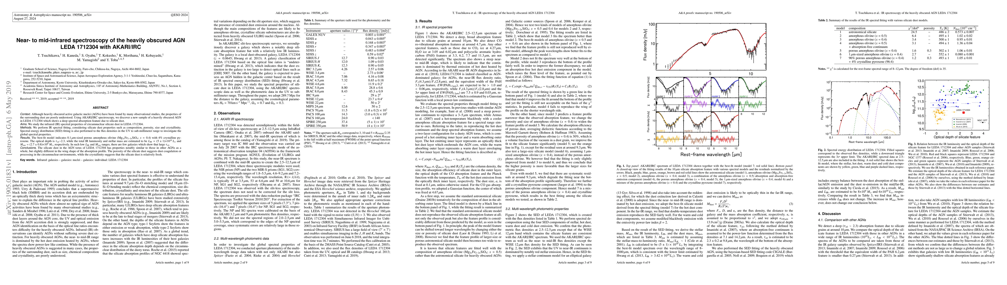 Context. Although heavily obscured active galactic nuclei (AGNs) have been found by many observational studies, the properties of the surrounding dust are poorly understood. Using AKARI/IRC spectroscopy, we discover a new sample of a heavily obscured AGN in LEDA 1712304 which shows a deep spectral absorption feature due to silicate dust. Aims. We study the infrared (IR) spectral properties of circumnuclear silicate dust in LEDA 1712304. Methods. We perform IR spectral fitting, considering silicate dust properties such as composition, porosity, size and crystallinity. Spectral energy distribution (SED) fitting is also performed to the flux densities in the UV to sub-millimeter range to investigate the global spectral properties. Results. The best-fit model indicates 0.1 $\mu$m-sized porous amorphous olivine (${\rm Mg_{2x}Fe_{2-2x}SiO_4}$; $x=0.4$) with $4\%$ crystalline pyroxene. The optical depth is $\tau_{\rm sil}{\sim}2.3$, while the total IR luminosity and stellar mass are estimated to be $L_{\rm IR}=(5\pm1){\times}10^{10}\,L_{\odot}$ and $M_{\rm star}=(2.7\pm0.8){\times}10^{9}\,M_{\odot}$, respectively. In such low $L_{\rm IR}$ and $M_{\rm star}$ ranges, there are few galaxies which show that large ${\tau}_{\rm sil}$. Conclusions. The silicate dust in the AGN torus of LEDA 1712304 has properties notably similar to those in other AGNs as a whole, but slightly different in the wing shape of the absorption profile. The porosity of the silicate dust suggests dust coagulation or processing in the circumnuclear environments, while the crystallinity suggests that the silicate dust is relatively fresh.