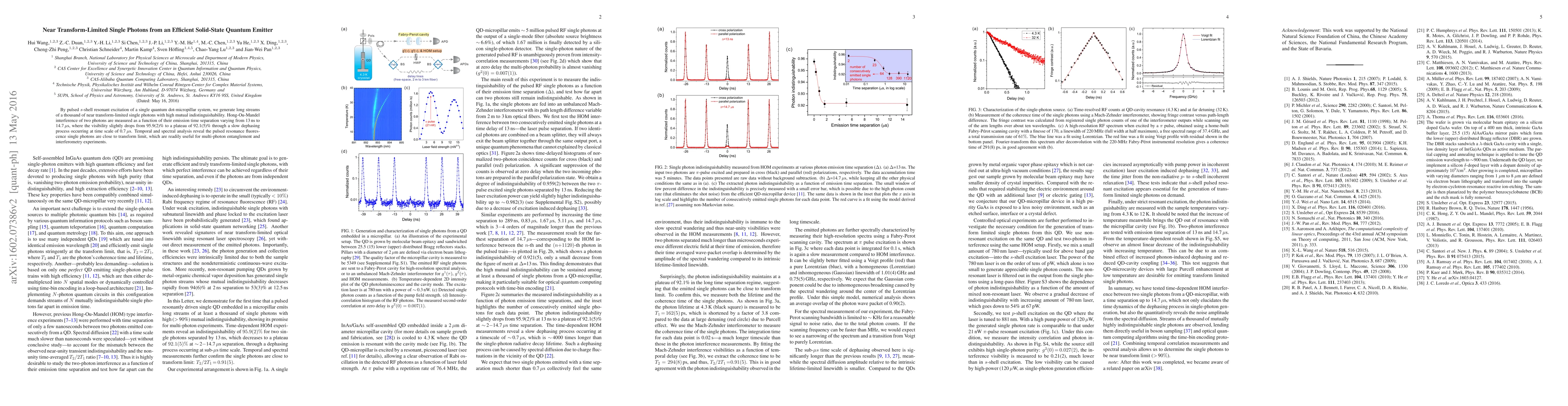 By pulsed s-shell resonant excitation of a single quantum dot-micropillar system, we generate long streams of a thousand of near transform-limited single photons with high mutual indistinguishability. Hong-Ou-Mandel interference of two photons are measured as a function of their emission time separation varying from 13 ns to 14.7 {\mu}s, where the visibility slightly drops from 95.9(2)% to a plateau of 92.1(5)% through a slow dephasing process occurring at time scale of 0.7 {\mu}s. Temporal and spectral analysis reveal the pulsed resonance fluorescence single photons are close to transform limit, which are readily useful for multi-photon entanglement and interferometry experiments.