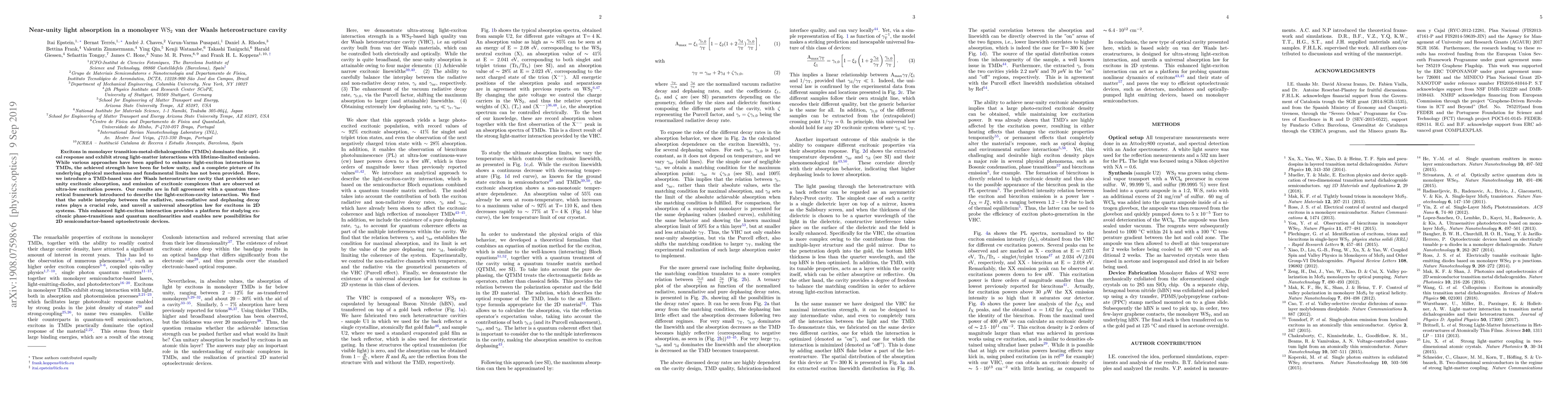This paper reports a van der Waals heterostructure cavity that achieves near-unity light absorption in monolayer WS2, revealing a fundamental limit in light-exciton interactions. The study uncovers a universal absorption law for 2D systems and suggests potential for advanced optoelectronic devices.