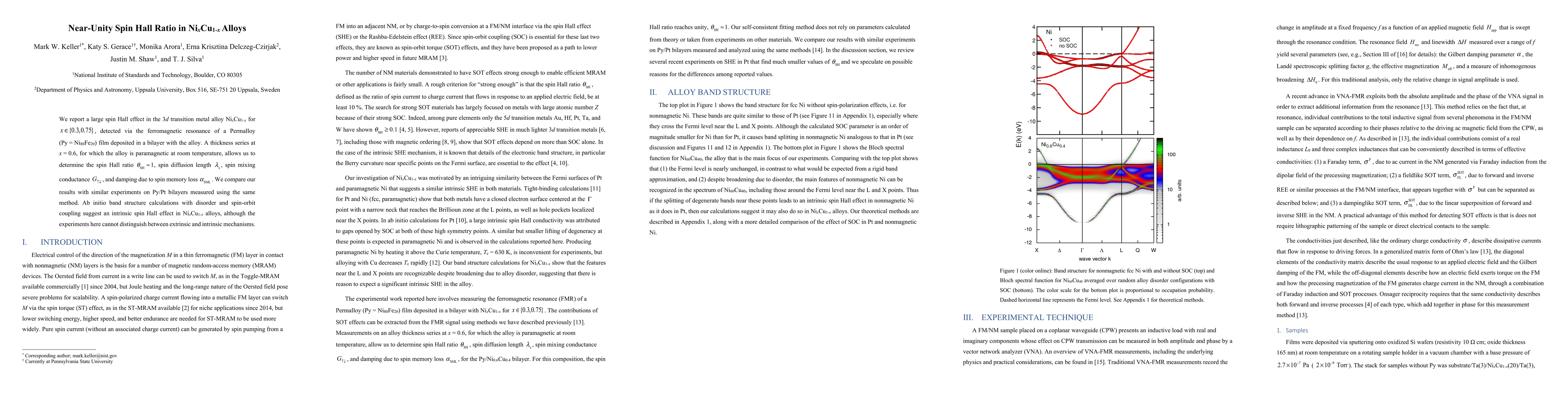 This study reports a near-unity spin Hall ratio in Ni$_x$Cu$_{1-x}$ alloys, indicating a large spin Hall effect, and uses ferromagnetic resonance to determine spin-related properties. The findings suggest intrinsic spin Hall effects in these alloys, though the exact mechanism remains unclear.