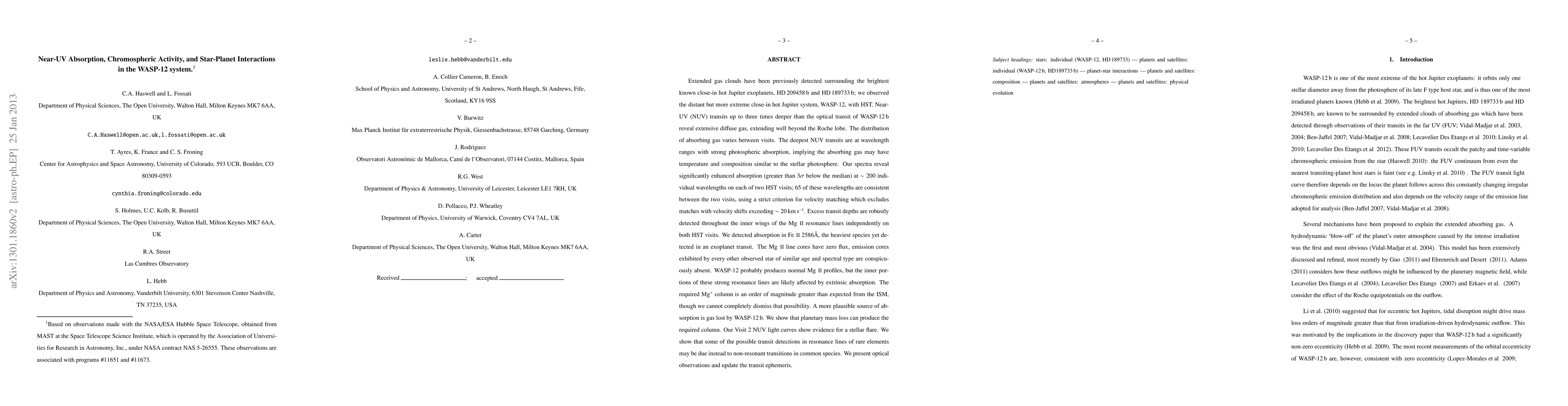We observed the extreme close-in hot Jupiter system WASP-12 with HST. Near-UV transits up to three times deeper than the optical transit of WASP-12b reveal extensive diffuse gas, extending well beyond the Roche lobe. The distribution of absorbing gas varies between visits. The deepest NUV transits are at wavelength ranges with strong photospheric absorption, implying the absorbing gas may have temperature and composition similar to the stellar photosphere. Our spectra reveal significantly enhanced absorption (greater than 3 \sigma below the median) at ~200 wavelengths on each of two HST visits; 65 of these wavelengths are consistent between the two visits, using a strict criterion for velocity matching which excludes matches with velocity shifts exceeding ~20 km/s. Excess transit depths are robustly detected throughout the inner wings of the MgII resonance lines independently on both HST visits. We detected absorption in FeII 2586A, the heaviest species yet detected in an exoplanet transit. The MgII line cores have zero flux, emission cores exhibited by every other observed star of similar age and spectral type are conspicuously absent. WASP-12 probably produces normal MgII profiles, but the inner portions of these strong resonance lines are likely affected by extrinsic absorption. The required Mg+ column is an order of magnitude greater than expected from the ISM, though we cannot completely dismiss that possibility. A more plausible source of absorption is gas lost by WASP-12b. We show that planetary mass loss can produce the required column. Our Visit 2 NUV light curves show evidence for a stellar flare. We show that some of the possible transit detections in resonance lines of rare elements may be due instead to non-resonant transitions in common species. We present optical observations and update the transit ephemeris.