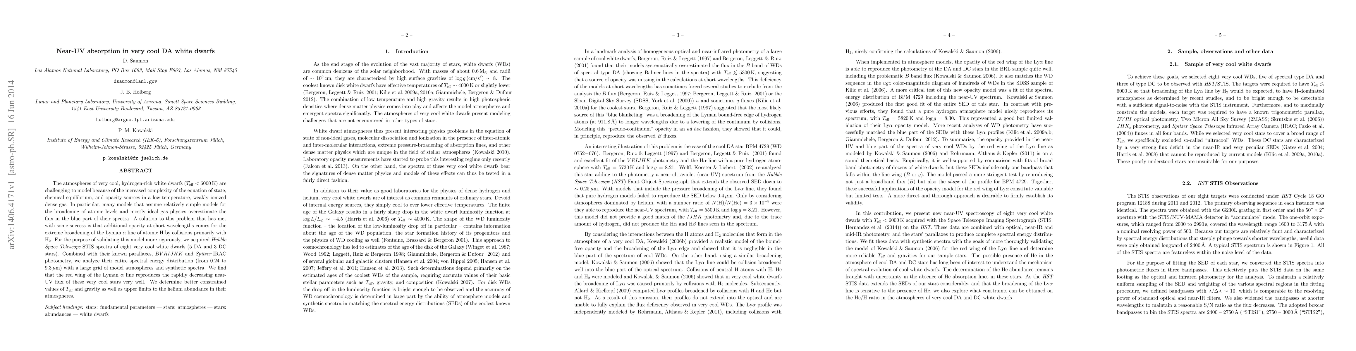The study acquired Hubble Space Telescope STIS spectra of 8 very cool white dwarfs, combined with known parallaxes and BVRIJHK and Spitzer IRAC photometry, to analyze their spectral energy distribution (SED) from 0.24 to 9.3 micron using a large grid of model atmospheres and synthetic spectra.