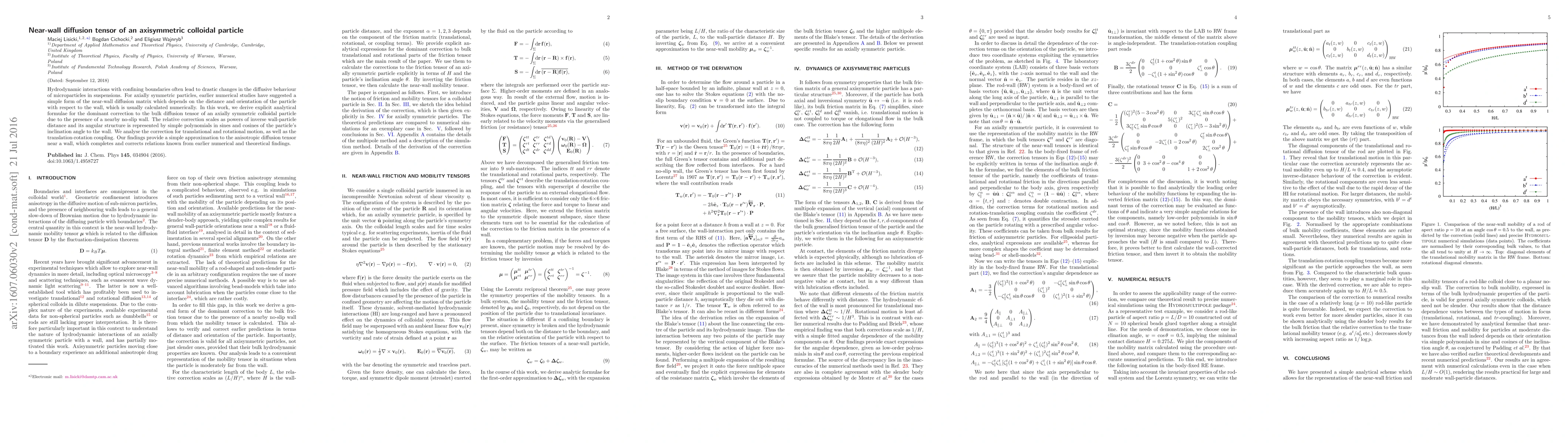 This paper derives analytical expressions for the near-wall diffusion tensor of an axisymmetric colloidal particle, providing a simple approximation for the anisotropic diffusion tensor influenced by a nearby no-slip wall. The relative correction is represented by polynomials in the particle's inclination angle, offering a correction to earlier numerical findings.