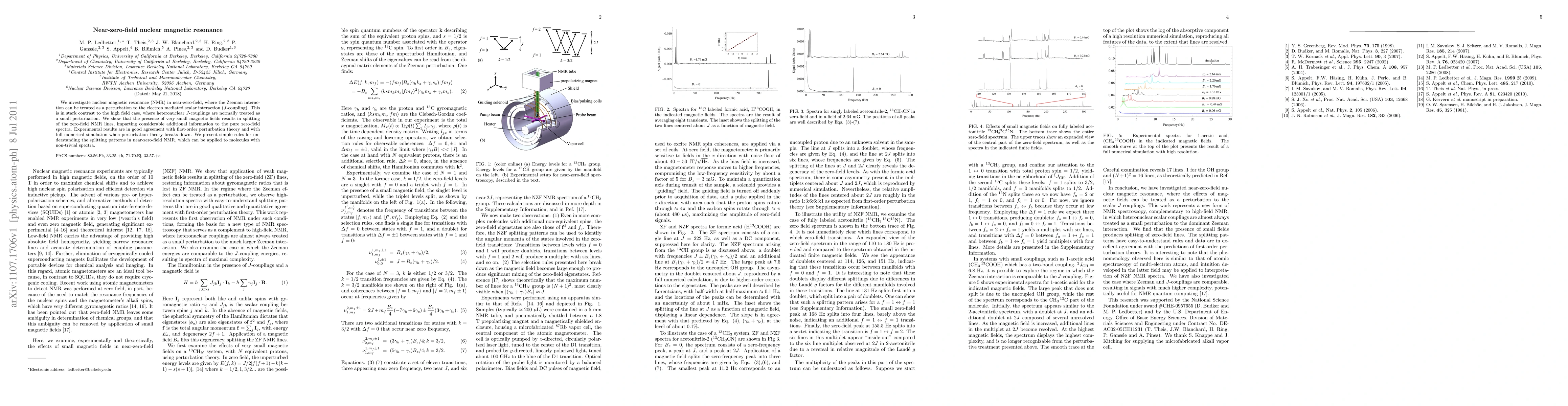 This paper investigates nuclear magnetic resonance (NMR) in near-zero-field conditions, demonstrating how small magnetic fields cause splitting of zero-field NMR lines, providing additional spectral information. Experimental results align with first-order perturbation theory and numerical simulations.