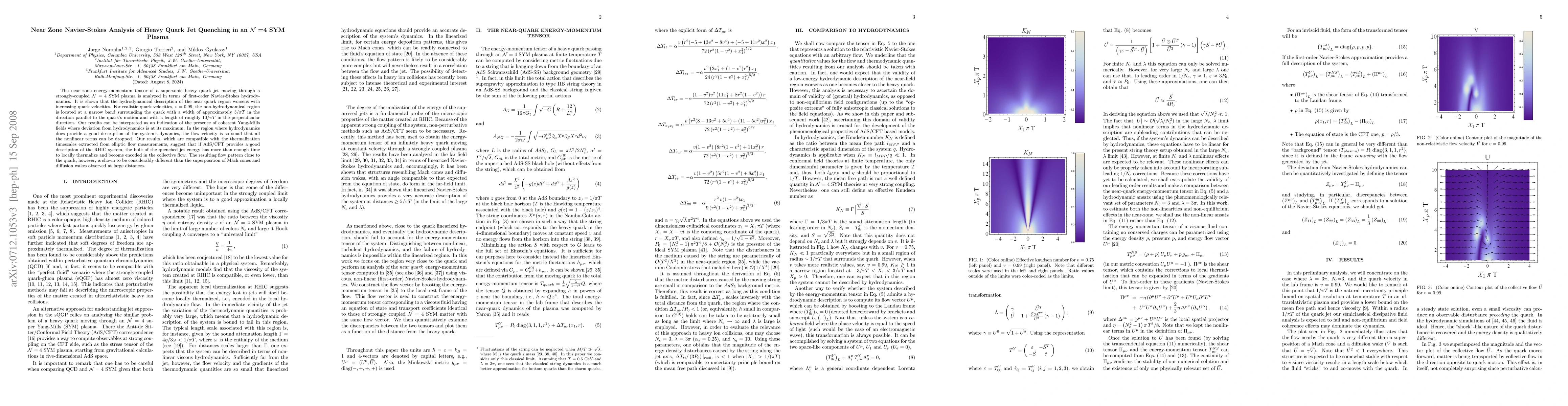 The near zone energy-momentum tensor of a supersonic heavy quark jet moving through a strongly-coupled $\mathcal{N}=4$ SYM plasma is analyzed in terms of first-order Navier-Stokes hydrodynamics. It is shown that the hydrodynamical description of the near quark region worsens with increasing quark velocities. For realistic quark velocities, $v=0.99$, the non-hydrodynamical region is located at a narrow band surrounding the quark with a width of approximately $3/\pi T$ in the direction parallel to the quark's motion and with a length of roughly $10/\pi T$ in the perpendicular direction. Our results can be interpreted as an indication of the presence of coherent Yang-Mills fields where deviation from hydrodynamics is at its maximum. In the region where hydrodynamics does provide a good description of the system's dynamics, the flow velocity is so small that all the nonlinear terms can be dropped. Our results, which are compatible with the thermalization timescales extracted from elliptic flow measurements, suggest that if AdS/CFT provides a good description of the RHIC system, the bulk of the quenched jet energy has more than enough time to locally thermalize and become encoded in the collective flow. The resulting flow pattern close to the quark, however, is shown to be considerably different than the superposition of Mach cones and diffusion wakes observed at large distances.