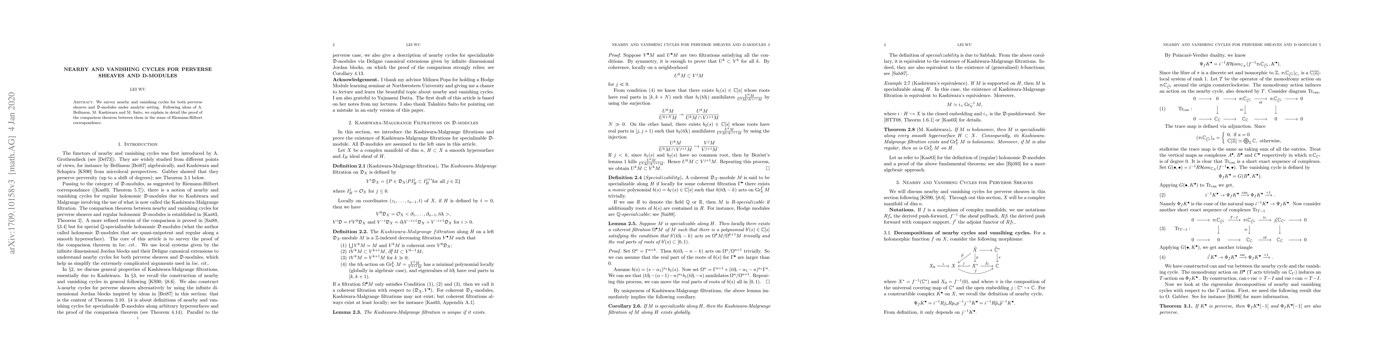 This paper surveys nearby and vanishing cycles for perverse sheaves and D-modules under an analytic setting, explaining the comparison theorem between them using Riemann-Hilbert correspondence.