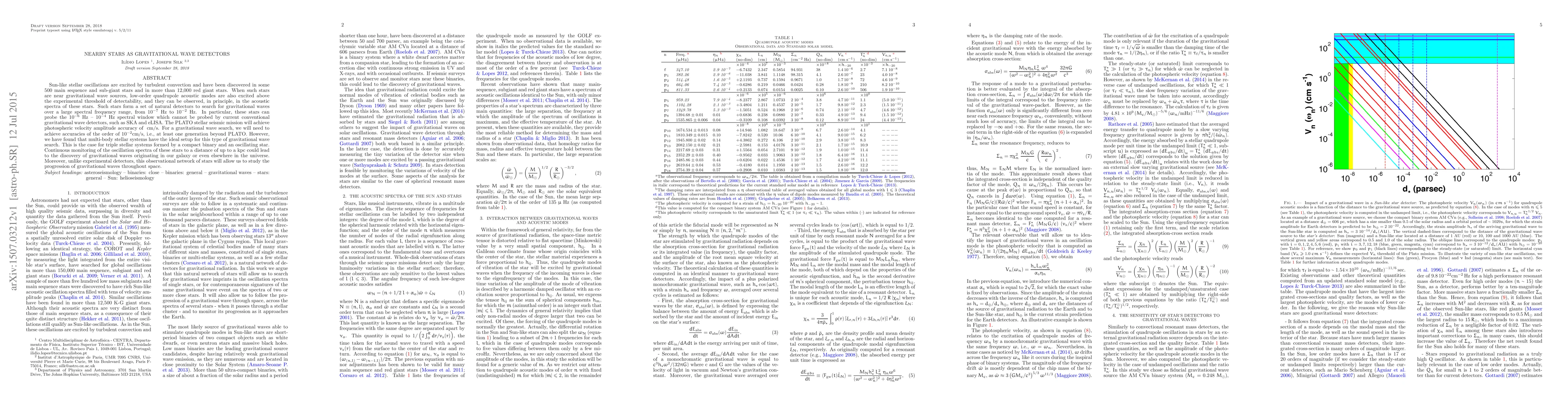 The paper presents a detailed theoretical framework for using stellar oscillations as gravitational wave detectors, including equations for absorption cross-sections and photospheric velocities, and identifies triple stellar systems as optimal configurations for such detection.