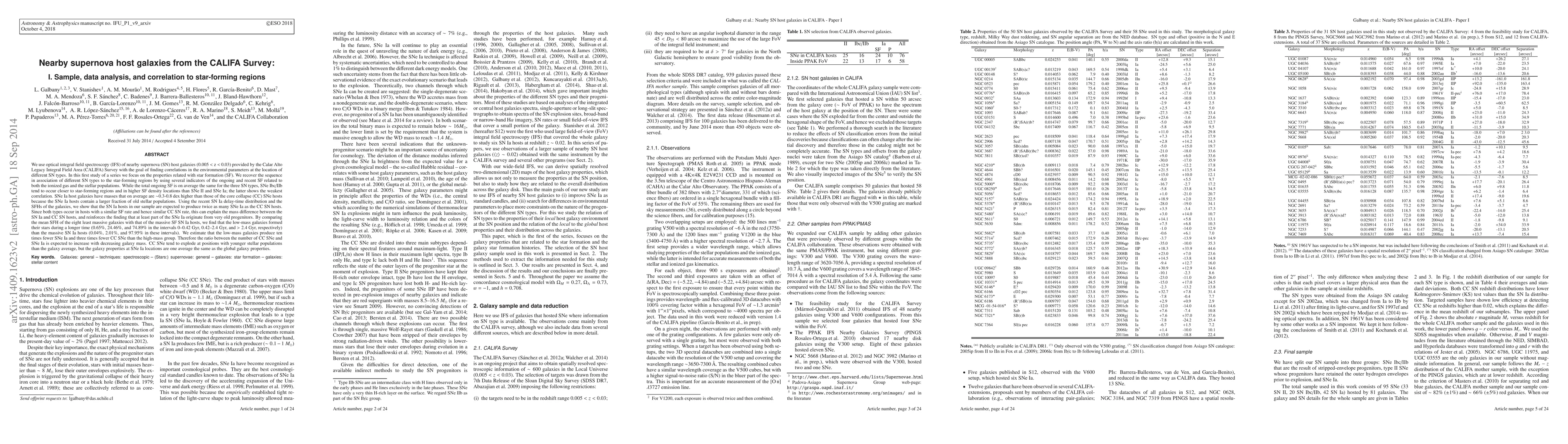 This paper analyzes optical IFS data from the CALIFA Survey to investigate the environmental parameters of nearby supernova host galaxies, finding that SNe Ibc/IIb occur closer to star-forming regions compared to SNe II and SNe Ia. SNe Ia host galaxies have higher masses due to older stellar populations, and the study suggests that low-mass galaxies produce fewer SNe Ia and CC SNe compared to high-mass galaxies.