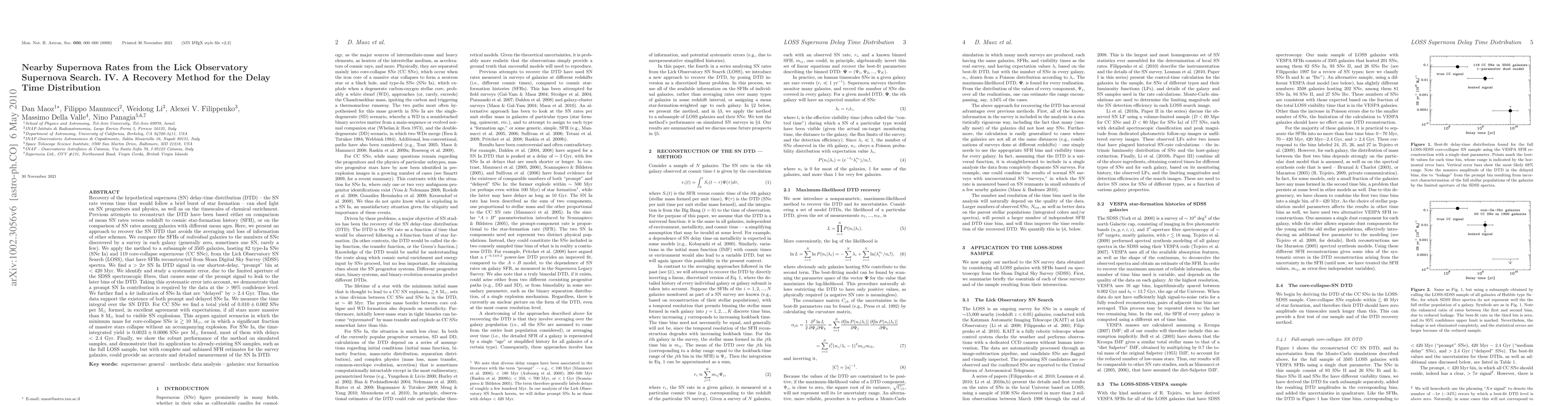 The supernova (SN) delay-time distribution (DTD) - the SN rate versus time that would follow a brief burst of star formation - can shed light on SN progenitors, and on chemical enrichment timescales. Previous attempts to recover the DTD have used comparisons of mean SN rates vs. redshift to cosmic star-formation history (SFH), or comparison of SN rates among galaxies of different mean ages. We present an approach to recover the SN DTD that avoids such averaging. We compare the SFHs of individual galaxies to the numbers of SNe discovered in each galaxy (generally zero, sometimes one or a few SNe). We apply the method to a subsample of 3505 galaxies, hosting 82 SNe Ia and 119 core-collapse SNe (CC SNe), from the Lick Observatory SN Search (LOSS), with SFHs reconstructed from SDSS spectra. We find a >2sigma SN Ia DTD signal in our shortest-delay, "prompt", bin at <420 Myr. Despite a systematic error, due to the limited aperture of the SDSS spectroscopic fibres, which causes some of the prompt signal to leak to the later DTD bins, the data require prompt SNe Ia at the >99% confidence. We further find, at 4sigma, SNe Ia that are "delayed" by > 2.4 Gyr. Thus, the data support the existence of both prompt and delayed SNe Ia. The time integral over the CC SN DTD is 0.010+/-0.002 SNe per Msun, as expected if all stars of mass >8 Msun lead to visible SN explosions. This argues against a minimum mass for CC SNe of >10 Msun, and against a significant fraction of massive stars that collapse without exploding. For SNe Ia, the time-integrated DTD is 0.0023+/-0.0006 SNe per Msun formed, most of them with delays < 2.4 Gyr. We show, using simulations, that application of the method to the full existing LOSS sample, but with complete and unbiased SFH estimates for the survey galaxies, could provide a detailed measurement of the SN Ia DTD.