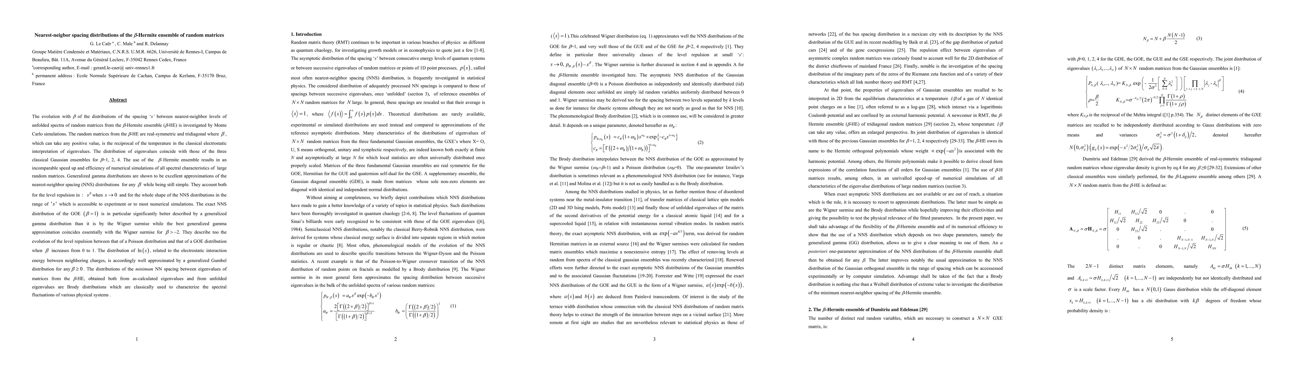 This paper investigates the nearest-neighbor spacing distributions in the beta-Hermite ensemble of random matrices using Monte Carlo simulations. Generalized gamma distributions are shown to accurately approximate these spacing distributions, providing a better fit than the Wigner surmise for lower beta values.