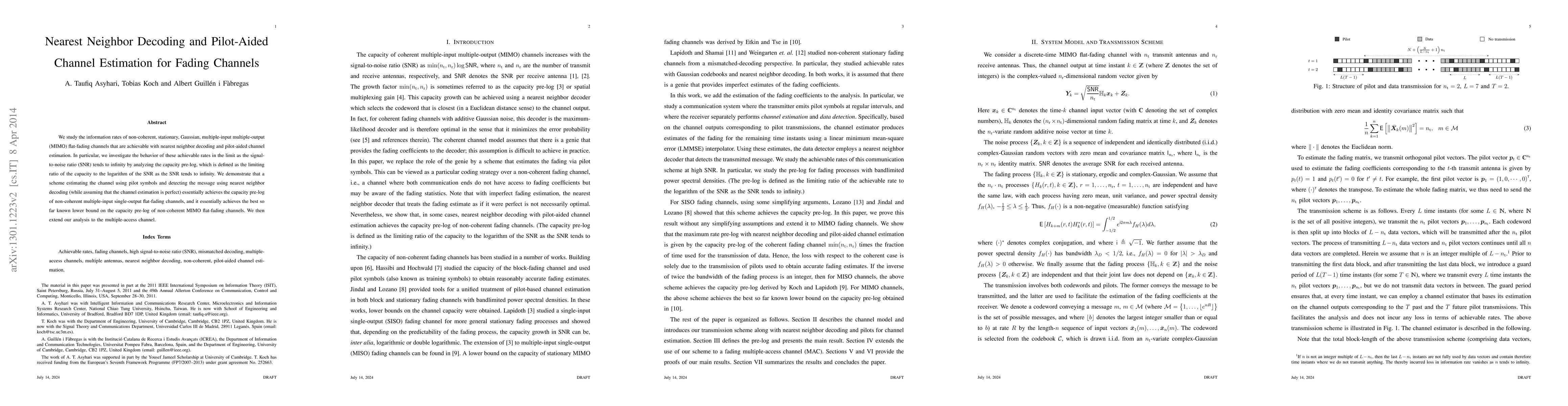 This paper investigates the achievable information rates for non-coherent MIMO flat-fading channels using nearest neighbor decoding and pilot-aided channel estimation, demonstrating that such a scheme achieves the best known lower bound on the capacity pre-log in high SNR scenarios. The analysis extends to the multiple-access channel.