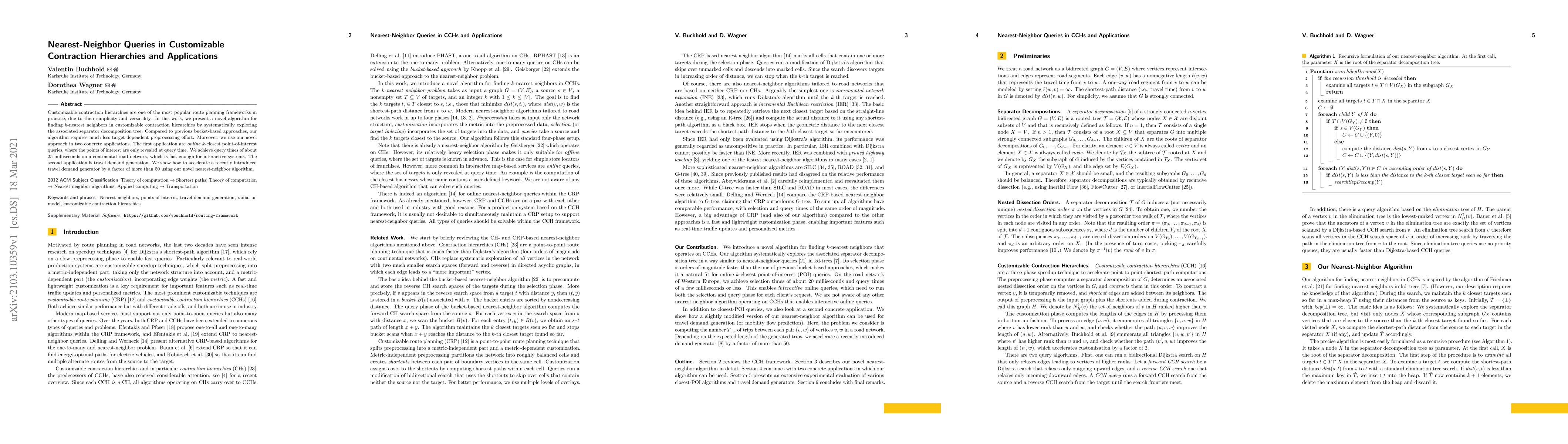 This paper presents a new algorithm for finding k-nearest neighbors in customizable contraction hierarchies, requiring less preprocessing than previous methods. The algorithm is applied to online k-closest point-of-interest queries and travel demand generation, achieving fast query times and significant acceleration respectively.
