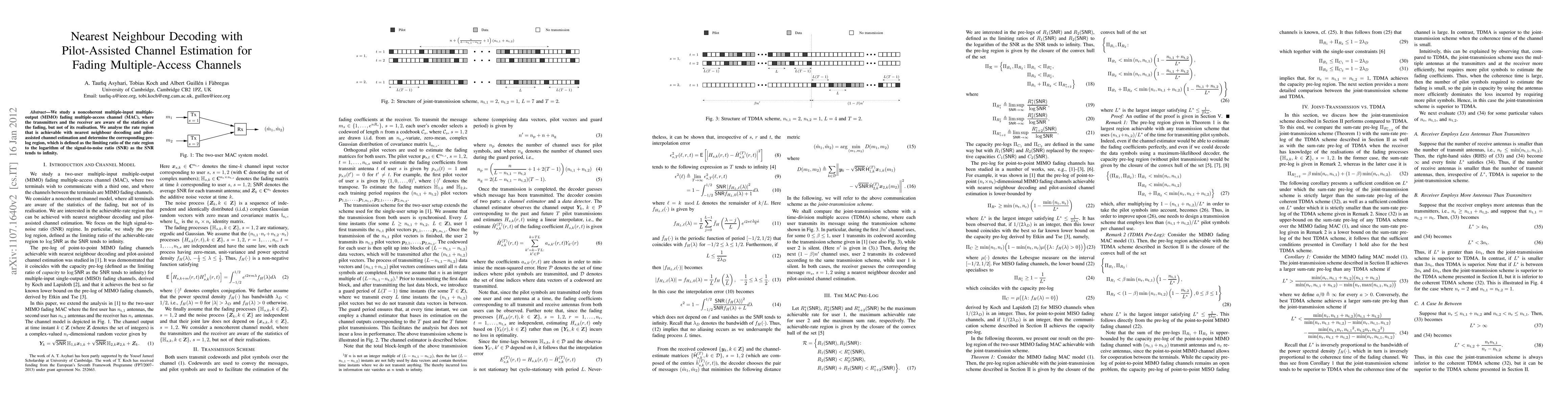 This paper investigates noncoherent MIMO fading multiple-access channels using nearest neighbour decoding and pilot-assisted channel estimation. It determines the achievable rate region and the corresponding pre-log region as the signal-to-noise ratio approaches infinity.