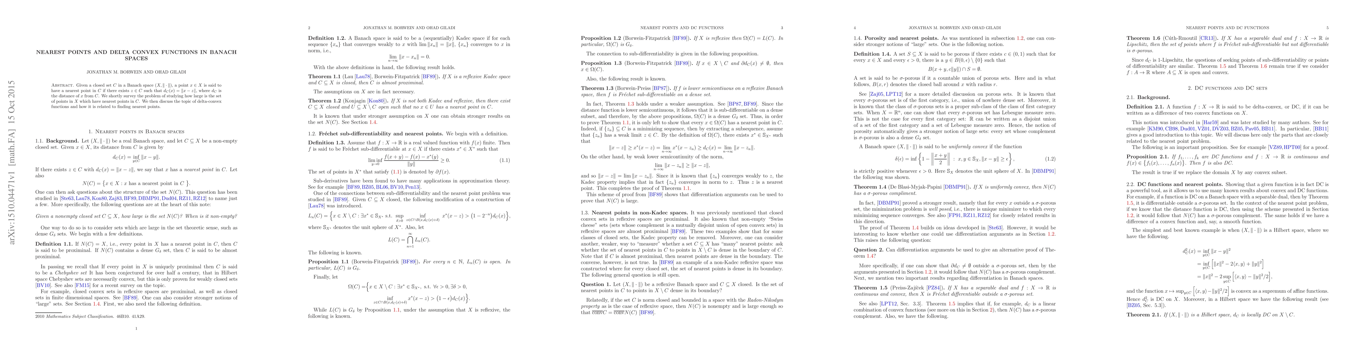 Given a closed set $C$ in a Banach space $(X, \|\cdot\|)$, a point $x\in X$ is said to have a nearest point in $C$ if there exists $z\in C$ such that $d_C(x) =\|x-z\|$, where $d_C$ is the distance of $x$ from $C$. We shortly survey the problem of studying how large is the set of points in $X$ which have nearest points in $C$. We then discuss the topic of delta-convex functions and how it is related to finding nearest points.