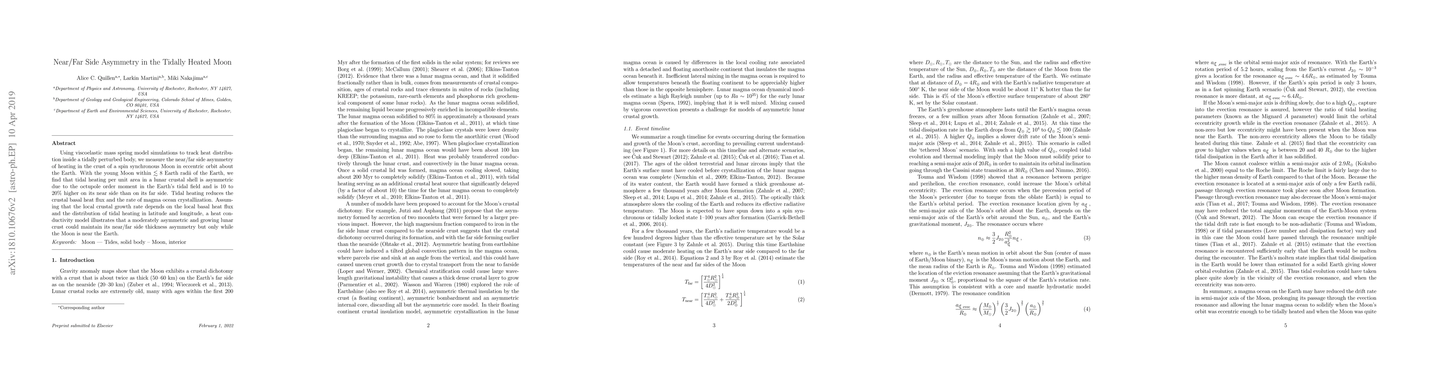 The paper presents a novel viscoelastic mass spring model to simulate and analyze tidal heating distribution in a tidally perturbed body, providing insights into lunar crustal asymmetry.