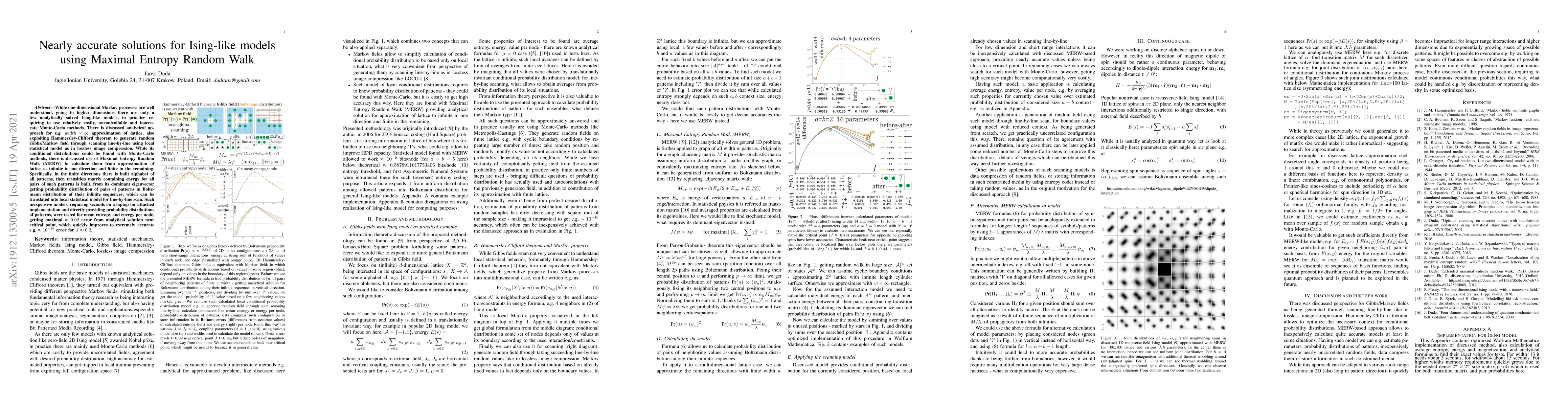 While one-dimensional Markov processes are well understood, going to higher dimensions there are only a few analytically solved Ising-like models, in practice requiring to use relatively costly, uncontrollable and inaccurate Monte-Carlo methods. There is discussed analytical approach for e.g. $width\times \infty$ approximation of lattice, also exploiting Hammersley-Clifford theorem to generate random Gibbs/Markov field through scanning line-by-line using local statistical model as in lossless image compression. While its conditional distributions could be found with Monte-Carlo methods, there is discussed use of Maximal Entropy Random Walk (MERW) to calculate them from approximation of lattice as infinite in one direction and finite in the remaining. Specifically, in the finite directions there is built alphabet of all patterns, then transition matrix containing energy for all pairs of such patterns is built, from its dominant eigenvector getting probability distribution of pairs of patterns in Boltzmann distribution of their infinite sequences, which can be translated into local statistical model for line-by-line scan. Such inexpensive models, requiring seconds on a laptop for attached implementation and directly providing probability distributions of patterns, were tested for mean entropy and energy per node, getting maximal $\approx 0.02$ error from analytical solution near critical point, which quickly improves to extremely accurate e.g. $\approx 10^{-10}$ error for $J\approx 0.2$.