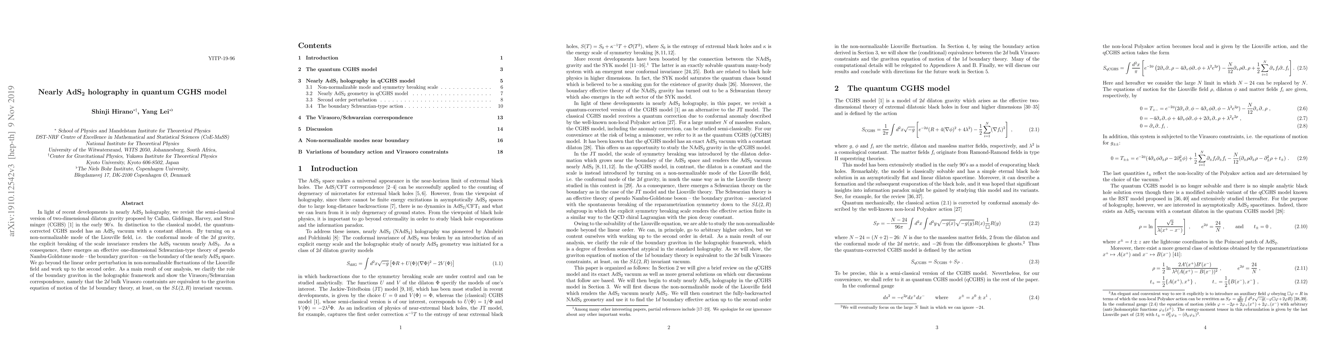 This paper revisits the quantum version of the CGHS model, showing how introducing non-normalizable modes of the Liouville field breaks scale invariance and transforms the AdS$_2$ vacuum into a nearly AdS$_2$ space. It demonstrates the equivalence between the bulk Virasoro constraints and the boundary graviton's equation of motion, establishing a Virasoro/Schwarzian correspondence.