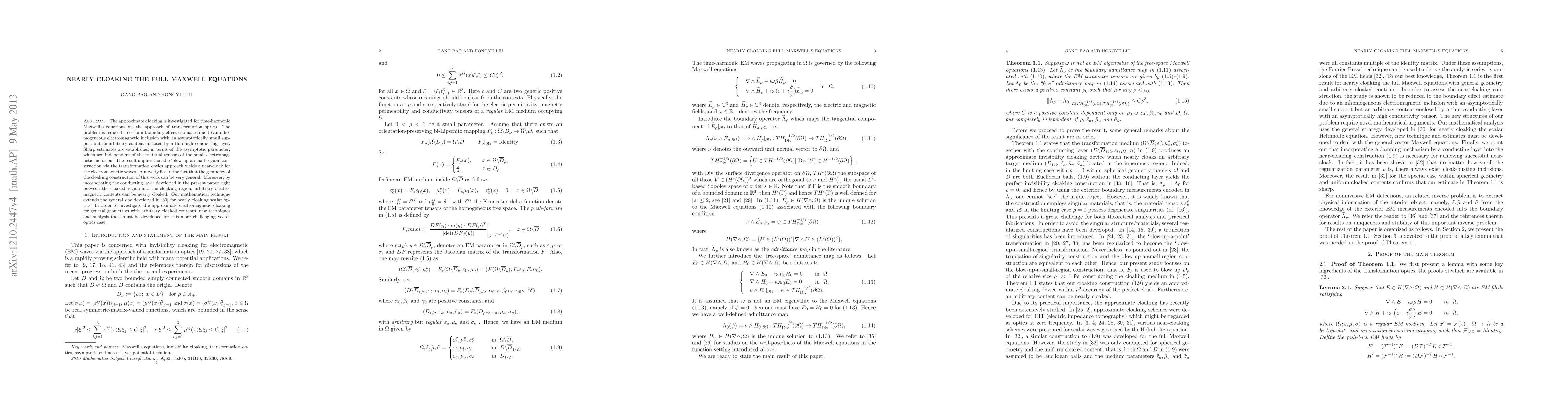 This paper explores the approximate cloaking of electromagnetic waves using transformation optics, focusing on the time-harmonic Maxwell's equations. It introduces a novel method that allows nearly complete cloaking of arbitrary electromagnetic contents within a general geometry, facilitated by a thin high-conducting layer.