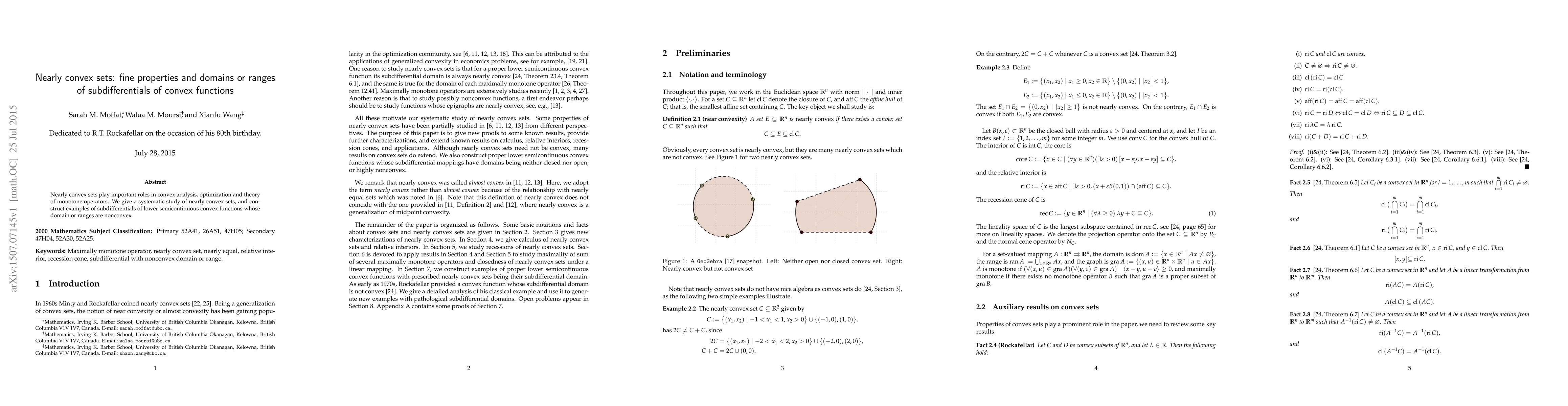 Summary: This paper systematically explores nearly convex sets and their significance in convex analysis and optimization. It constructs examples of subdifferentials of lower semicontinuous convex functions with nonconvex domains or ranges.