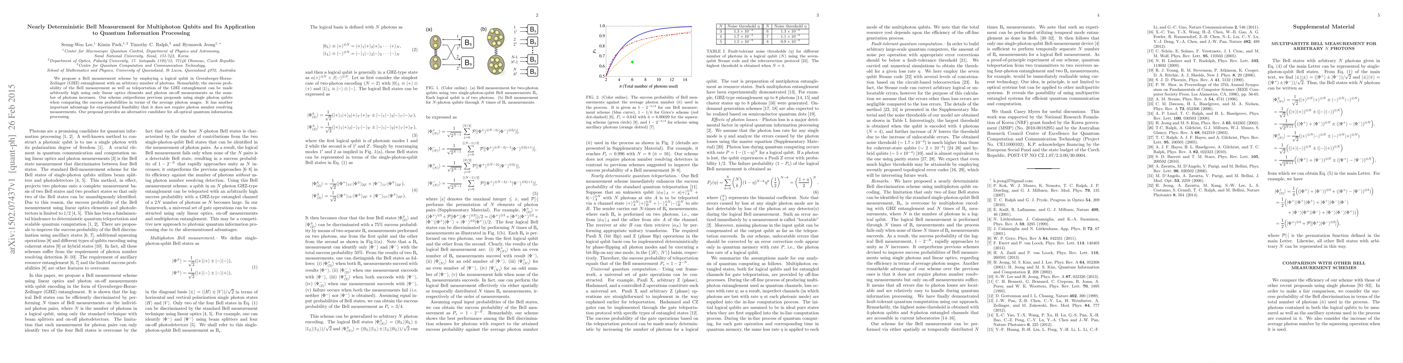 This paper proposes a nearly deterministic Bell measurement scheme using GHZ entangled multiphoton qubits, achieving high success probabilities with linear optics and photon on-off measurements. This approach outperforms single-photon qubit methods and offers improved experimental feasibility without requiring photon number resolving.