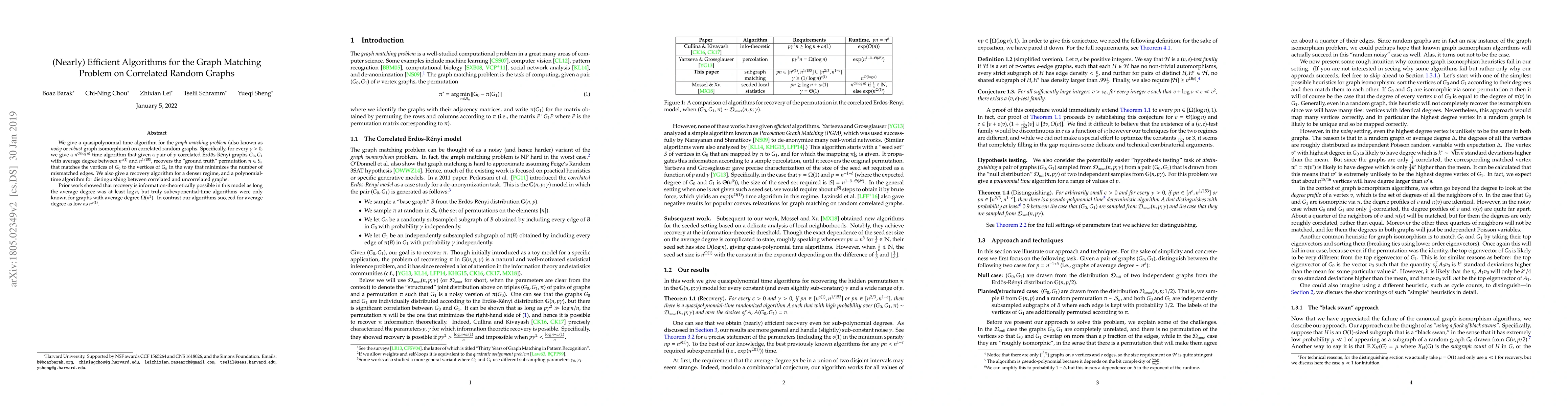 Researchers develop efficient algorithms for graph matching on correlated random graphs, achieving sub-exponential time complexity without requiring seeds, and improving upon previous limitations in density and correlation regimes.