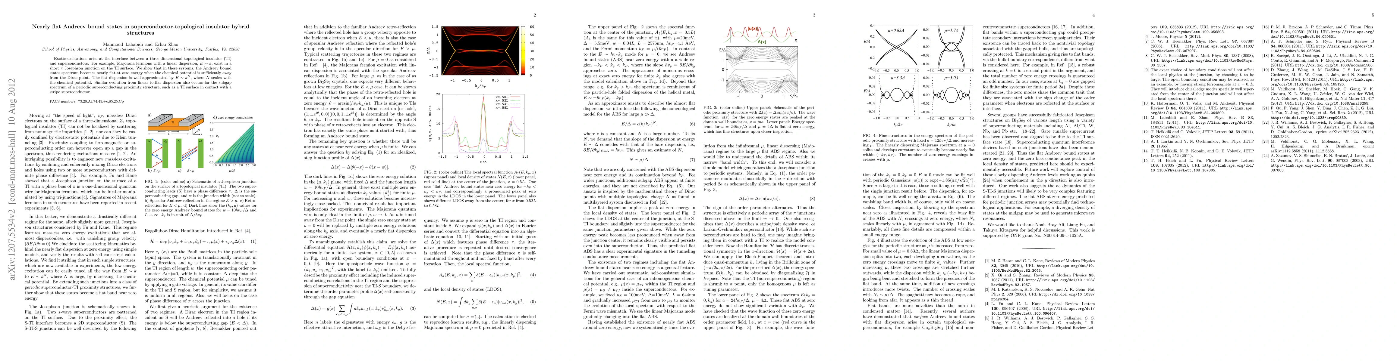 Researchers discover that the Andreev bound states spectrum in superconductor-topological insulator hybrids becomes nearly flat at zero energy when the chemical potential is far from the Dirac point. This phenomenon occurs due to a scaling relationship between the dispersion's slope and the chemical potential.
