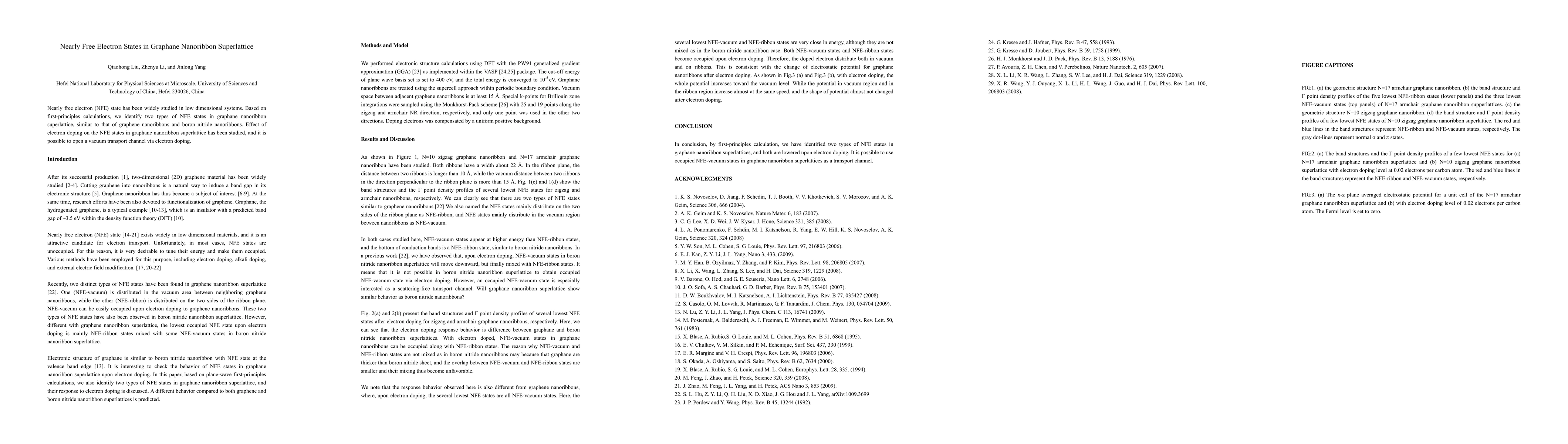 Nearly free electron (NFE) state has been widely studied in low dimensional systems. Based on first-principles calculations, we identify two types of NFE states in graphane nanoribbon superlattice, similar to those of graphene nanoribbons and boron nitride nanoribbons. Effect of electron doping on the NFE states in graphane nanoribbon superlattice has been studied, and it is possible to open a vacuum transport channel via electron doping.