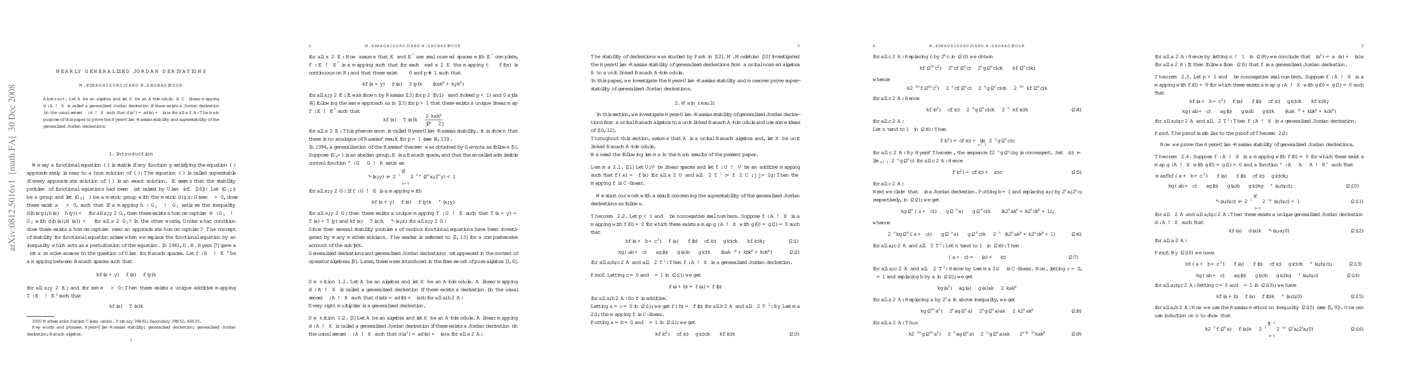 This paper explores generalized Jordan derivations in algebras, proving the Hyers-Ulam-Rassias stability and superstability of these mappings, which extend the concept of usual Jordan derivations.
