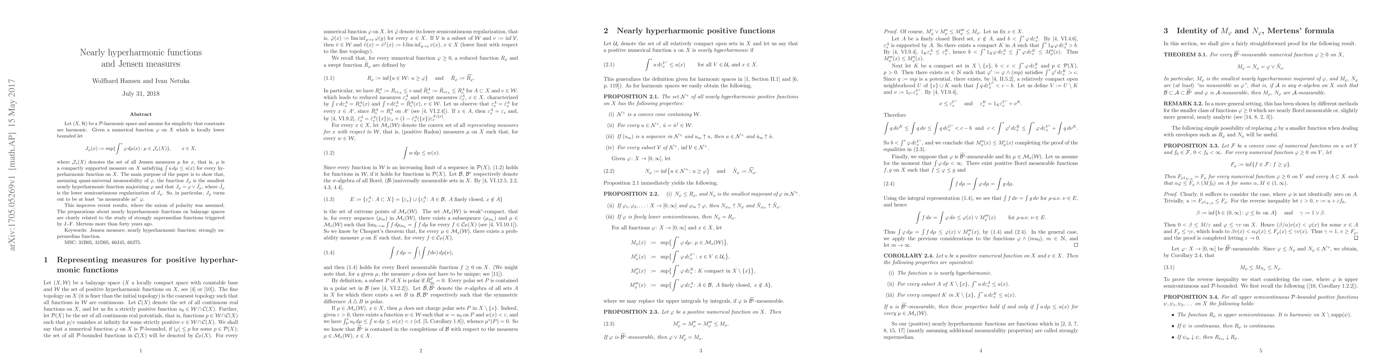 The paper examines nearly hyperharmonic functions and Jensen measures in the context of harmonic spaces, utilizing balayage spaces and potential theory.
