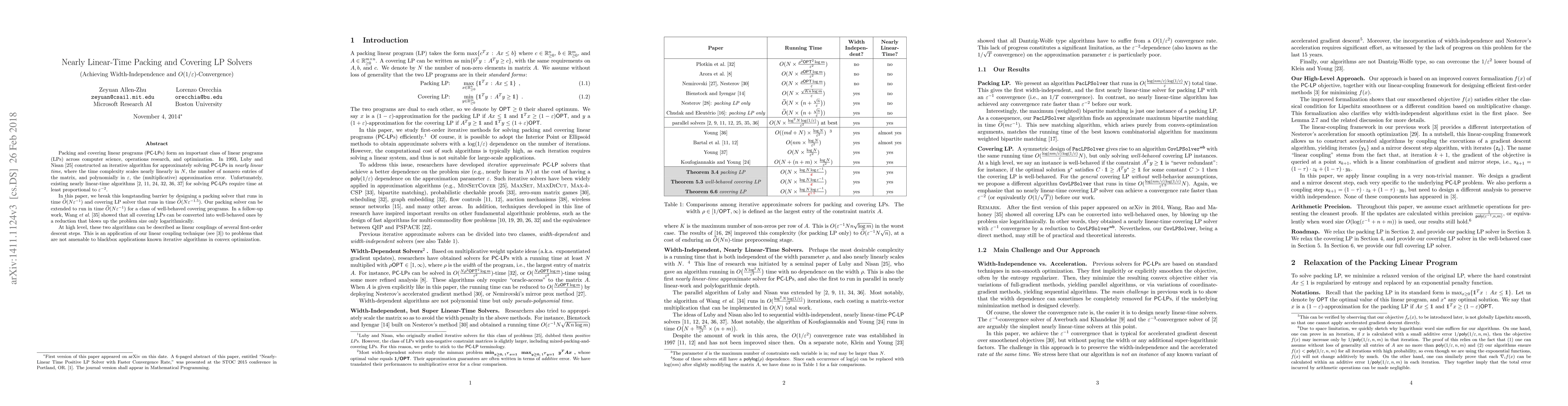 This paper introduces novel nearly linear-time algorithms for solving packing and covering linear programs (PC-LPs), achieving times of $\tilde{O}(N \varepsilon^{-1})$ and $\tilde{O}(N \varepsilon^{-1.5})$ respectively, breaking previous $\varepsilon^{-2}$ barriers. The algorithms leverage a linear coupling of first-order descent steps, extending beyond traditional convex optimization methods.