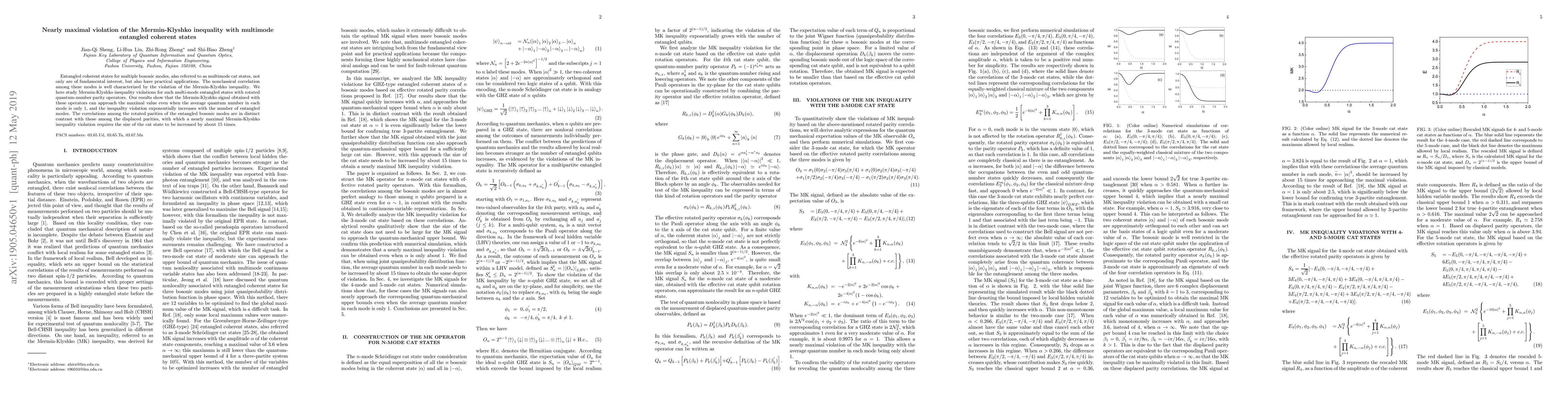 Researchers investigated multimode entangled coherent states for bosonic modes, finding that rotated quantum-number parity operators can produce nearly maximal Mermin-Klyshko inequality violations even with low average quantum numbers, and that the correlations between these parities differ from those of displaced parities.