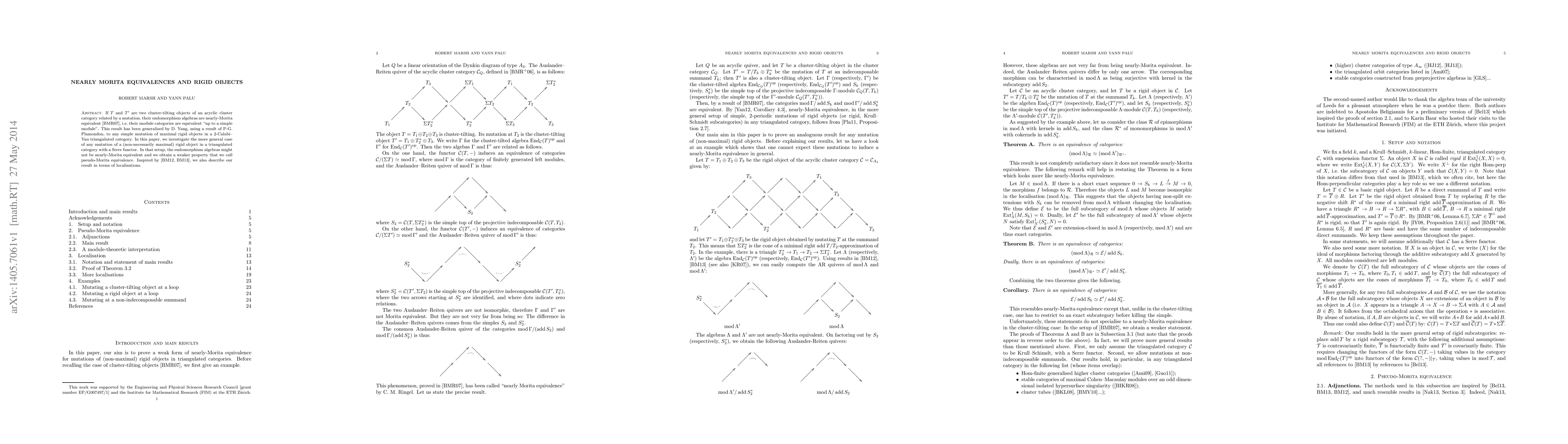 This paper explores the concept of nearly Morita equivalences in the context of mutations of rigid objects in triangulated categories with a Serre functor, generalizing previous results to non-maximal rigid objects. It introduces the notion of pseudo-Morita equivalence as a weaker form of equivalence in this broader setting.