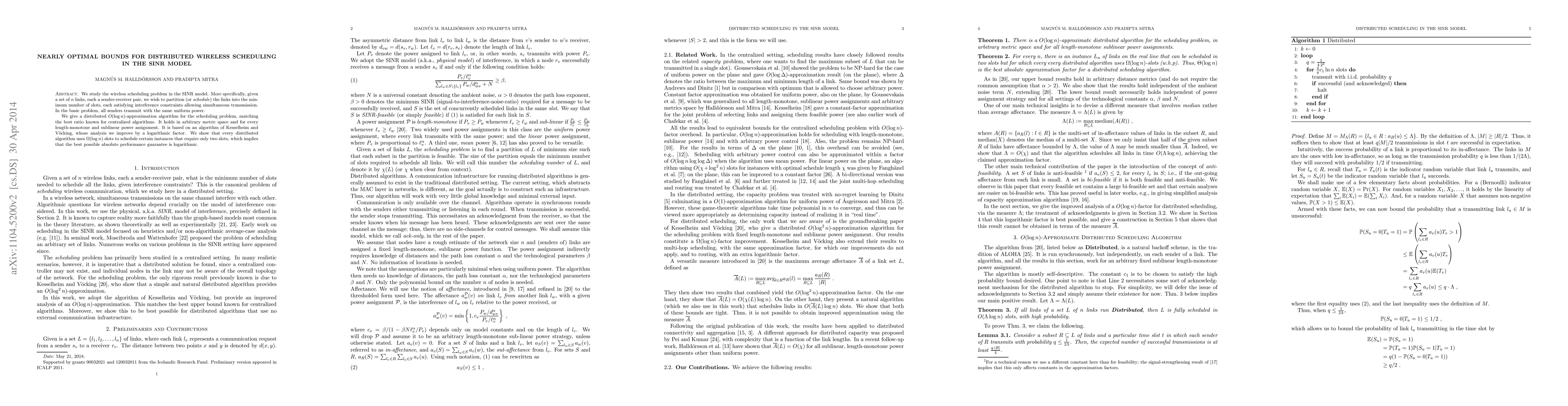This paper presents a distributed $O(\log n)$-approximation algorithm for scheduling wireless links in the SINR model, matching the best centralized algorithms. It demonstrates that the best possible absolute performance guarantee for distributed algorithms is logarithmic, as any such algorithm requires $\Omega(\log n)$ slots for certain instances.