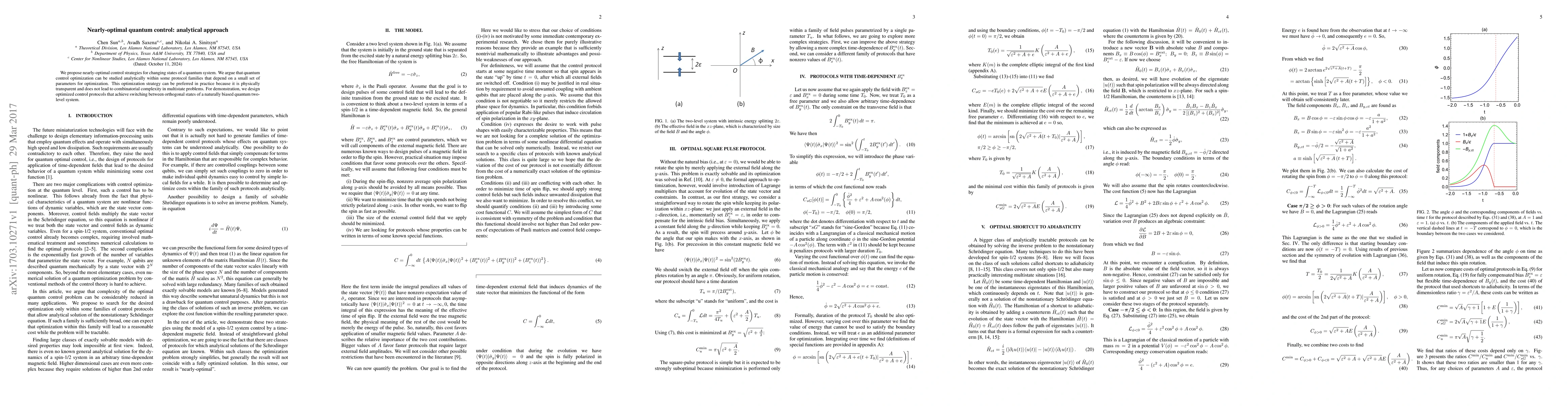 Researchers propose an analytical approach to nearly-optimal quantum control, enabling physically transparent optimization of complex quantum systems without combinatorial complexity. They demonstrate this method with optimized protocols for switching between states in a naturally biased quantum two-level system.
