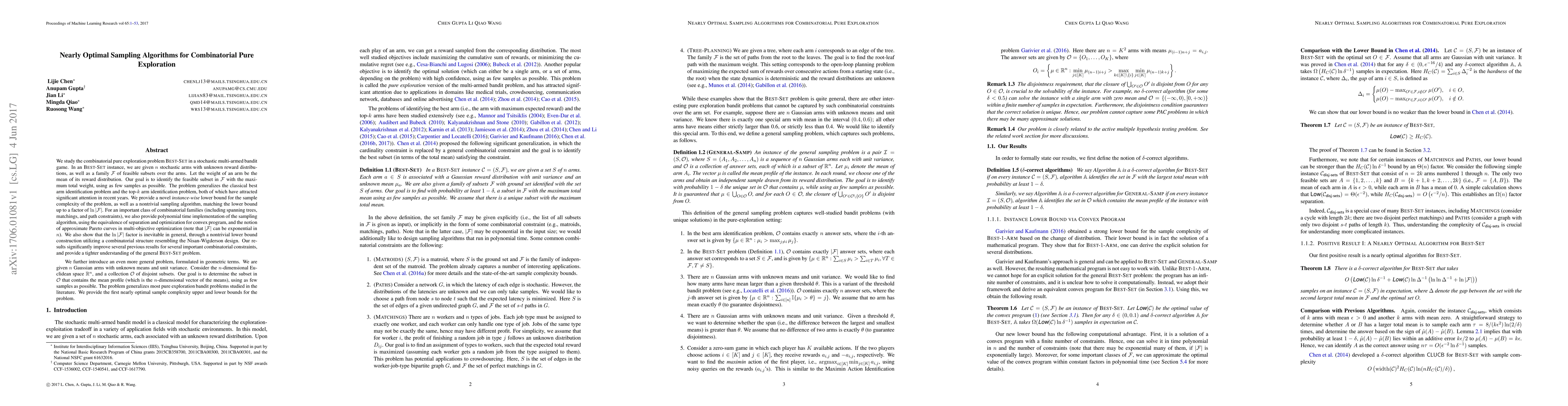 Researchers developed nearly optimal sampling algorithms for exploring combinatorial pure exploration problems, achieving sample complexity up to π|℟| in some cases, with potential implications for various optimization problems.