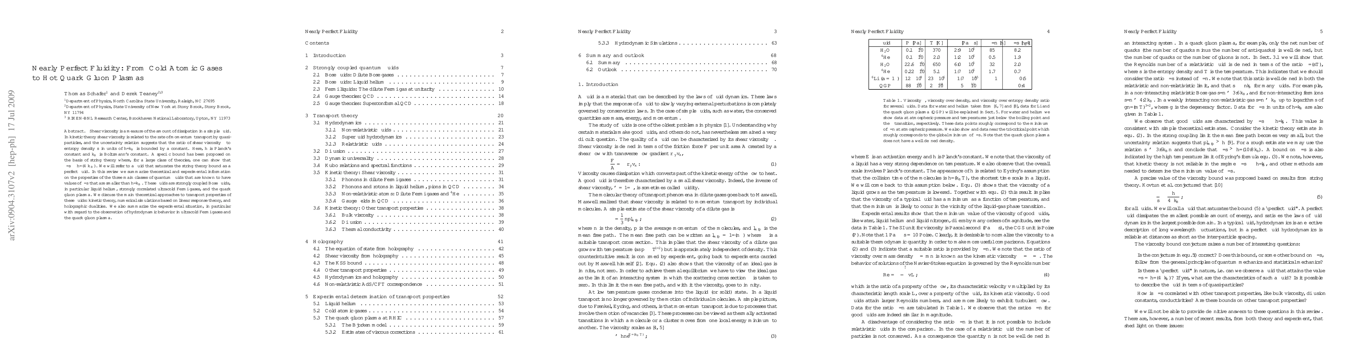 Shear viscosity is a measure of the amount of dissipation in a simple fluid. In kinetic theory shear viscosity is related to the rate of momentum transport by quasi-particles, and the uncertainty relation suggests that the ratio of shear viscosity eta to entropy density s in units of hbar/k_B is bounded by a constant. Here, hbar is Planck's constant and k_B is Boltzmann's constant. A specific bound has been proposed on the basis of string theory where, for a large class of theories, one can show that eta/s is greater or equal to hbar/(4 pi k_B). We will refer to a fluid that saturates the string theory bound as a perfect fluid. In this review we summarize theoretical and experimental information on the properties of the three main classes of quantum fluids that are known to have values of eta/s that are smaller than hbar/k_B. These fluids are strongly coupled Bose fluids, in particular liquid helium, strongly correlated ultracold Fermi gases, and the quark gluon plasma. We discuss the main theoretical approaches to transport properties of these fluids: kinetic theory, numerical simulations based on linear response theory, and holographic dualities. We also summarize the experimental situation, in particular with regard to the observation of hydrodynamic behavior in ultracold Fermi gases and the quark gluon plasma.
